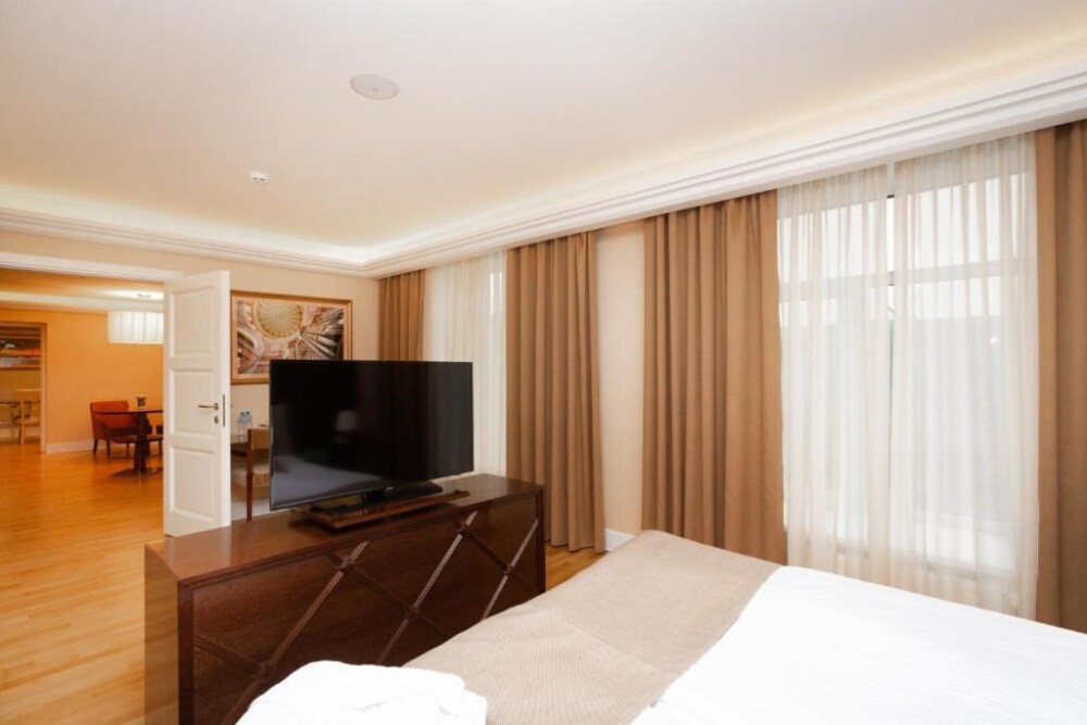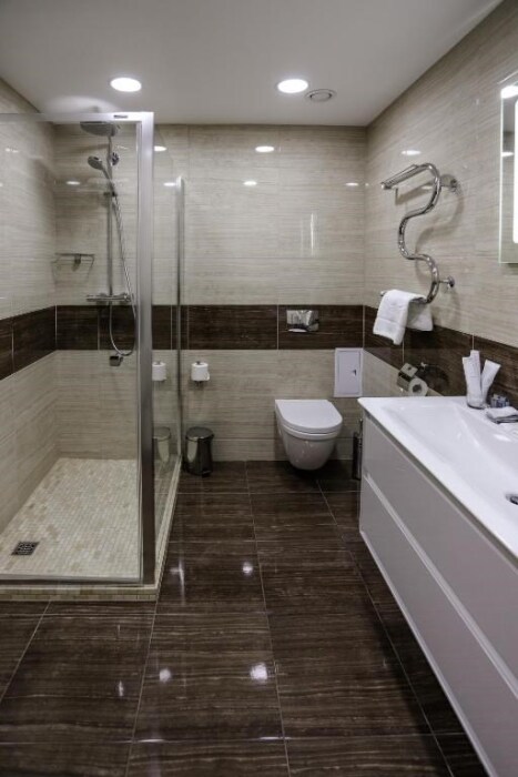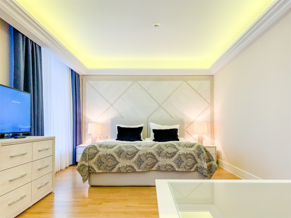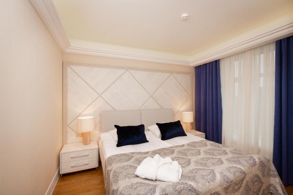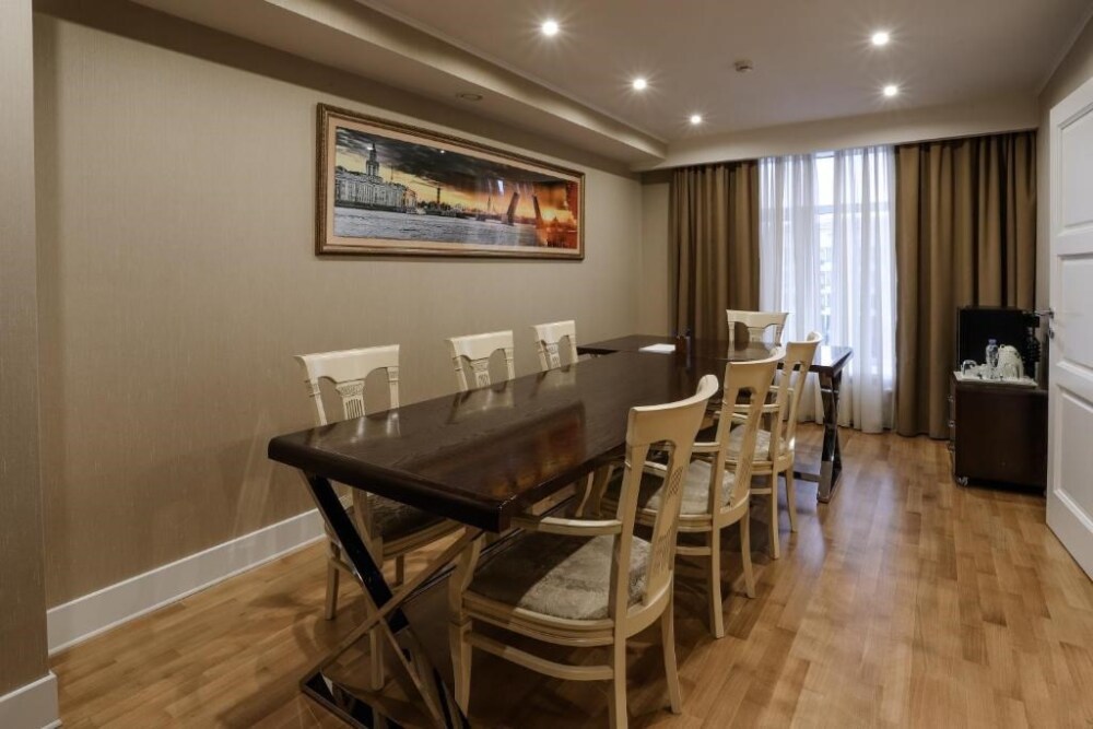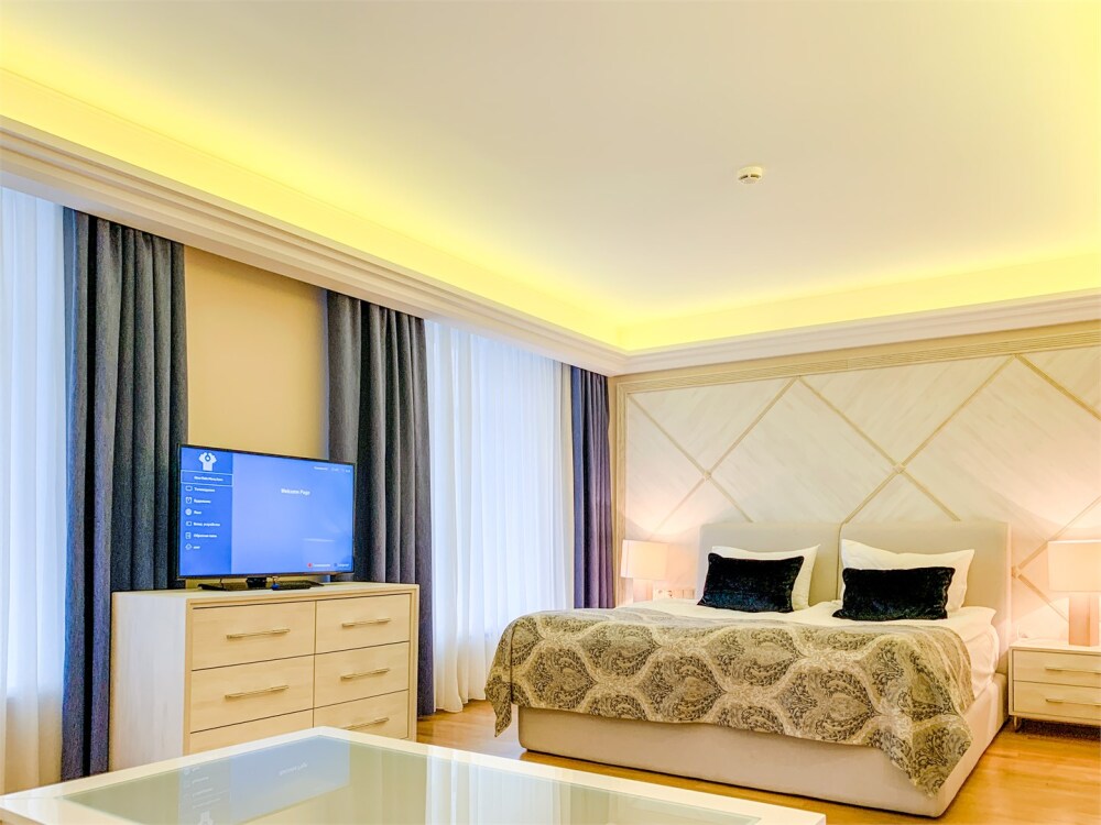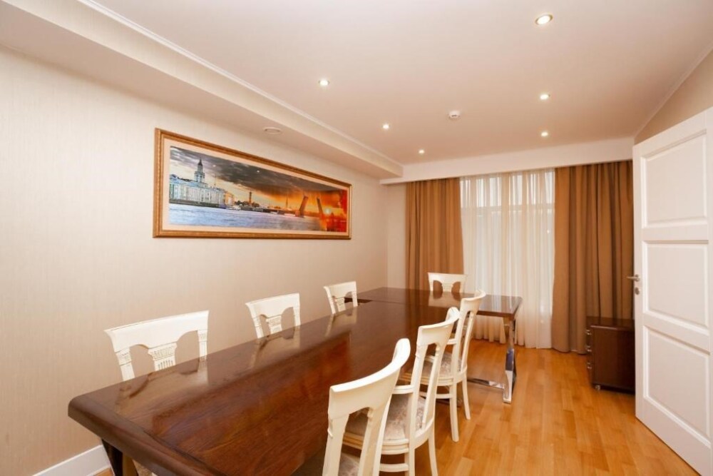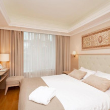 Апартаменты бизнес класса состоят из 3 комнат: кабинет/столовая, гостиная, спальня. Номер подойдет как деловым людям, нуждающимся в уюте и комфорте во время длительной командировки, так и будет идеальным решением для семей и компаний друзей, которые ценят удобство и хотят располагаться в одном номере.