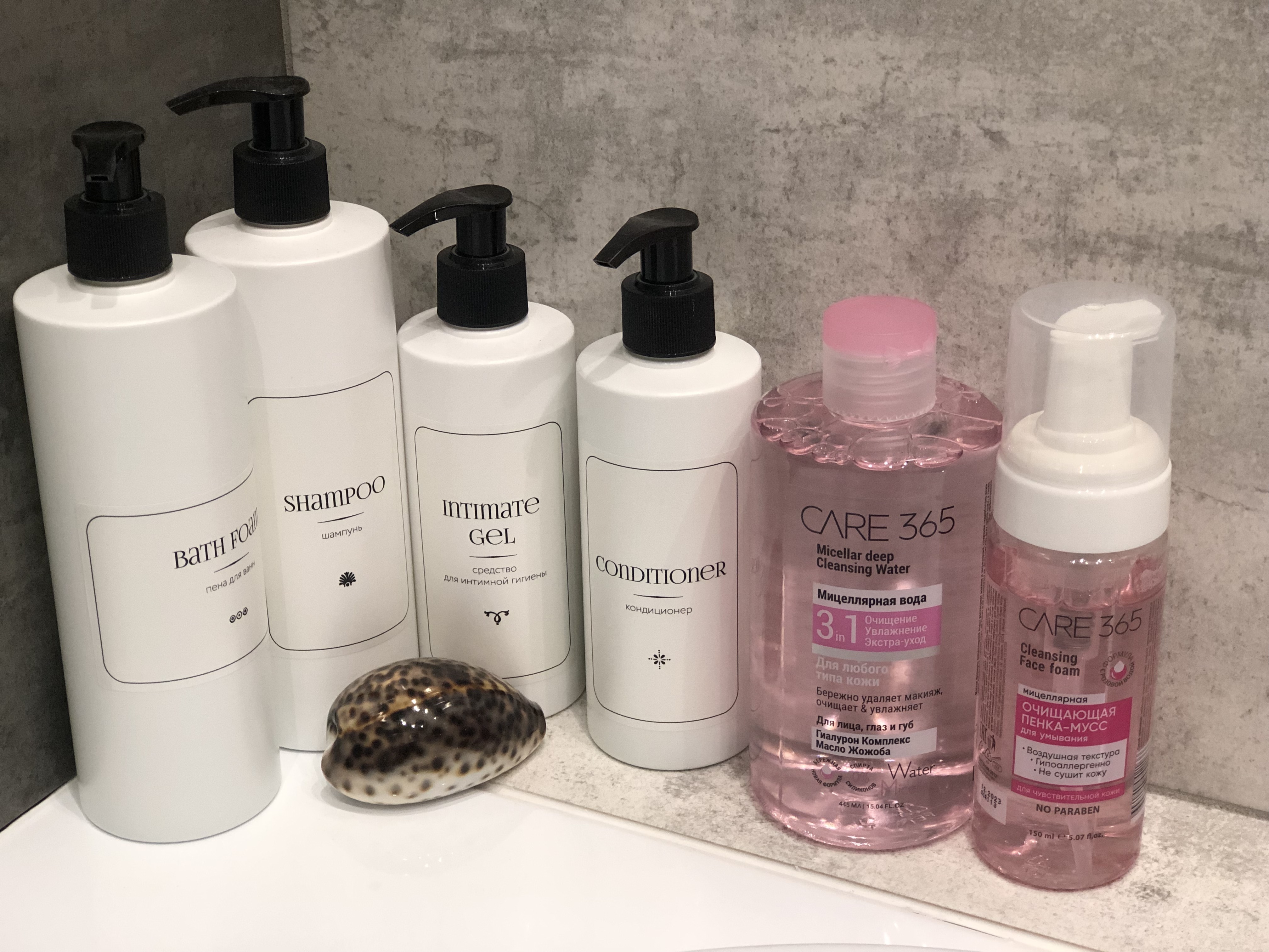 Ванная комната: ванная и душ, водонагреватель, стиральная машина, фен, комплект махровых полотенец (3 шт.), тапочки, средства личной гигиены (одноразовые наборы Hotel Collection в индивидуальной упаковке: зубные щетки / зубная паста, шампунь, гель для душа, мыло, кондиционер для волос).