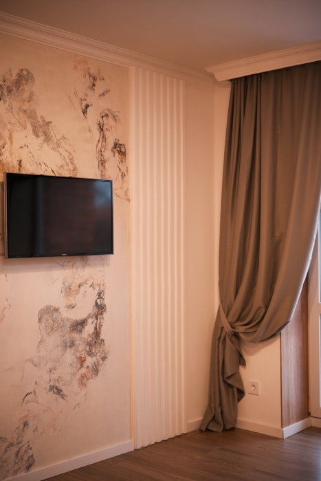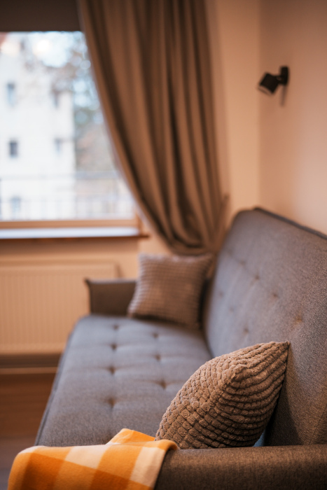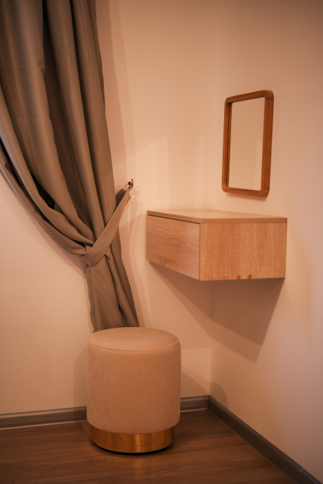 Возможно разместить до 4-х гостей. Двухспальная кровать 160×200и раскладной диван150×200.