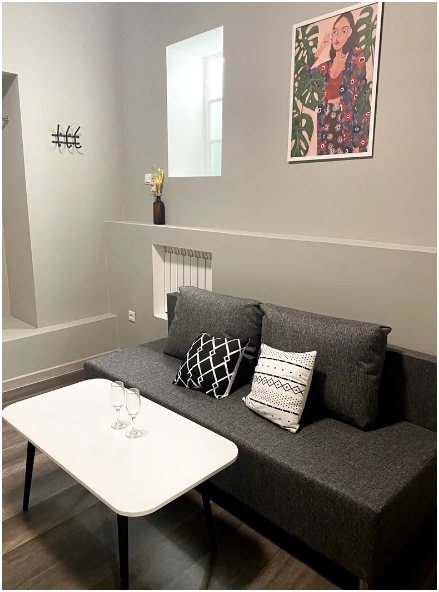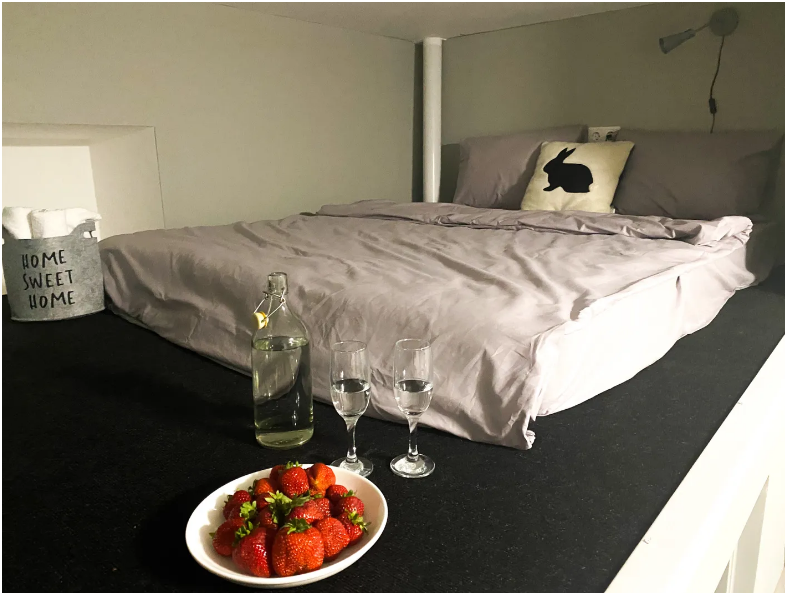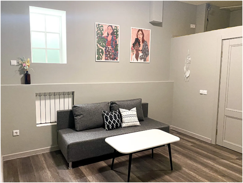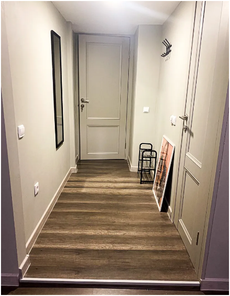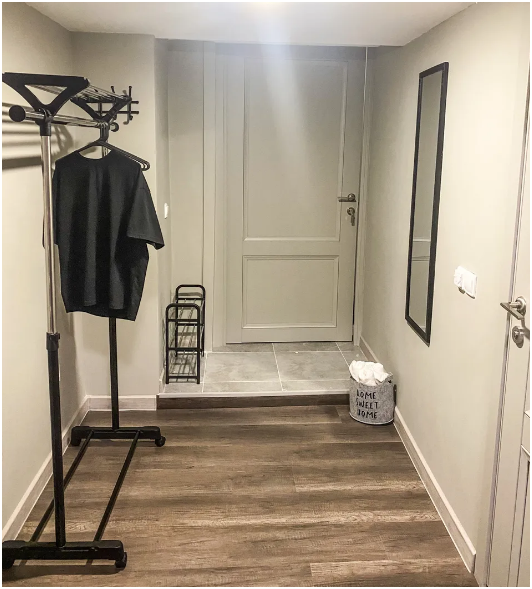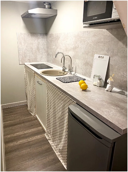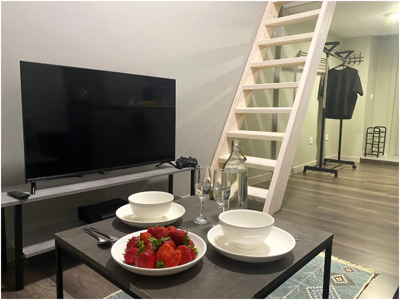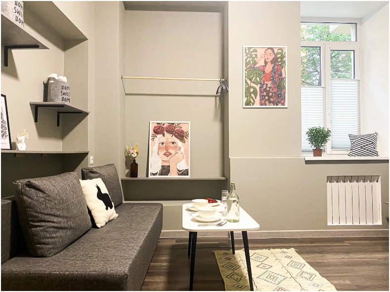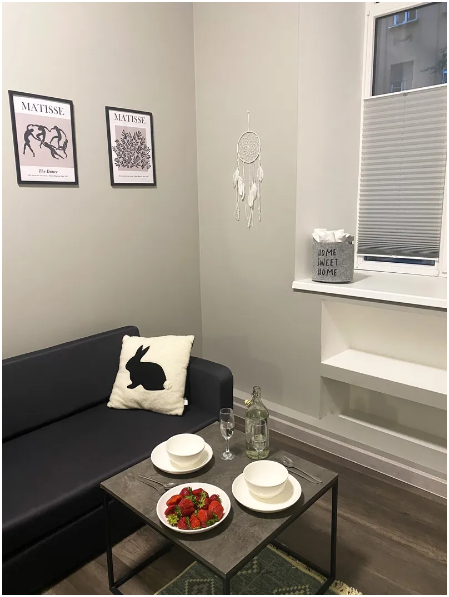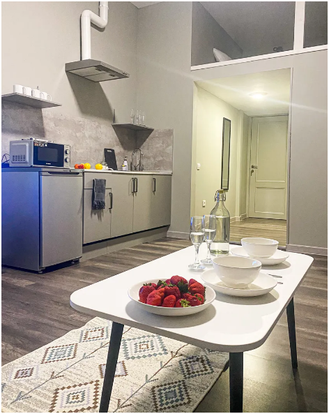 Квартира расположена на 1 этаже, оборудована всем необходимым: холодильник, электрическая плита, микроволновая печь, чайник, фен, стиральная машина, утюг, питьевая вода. Окна нет.