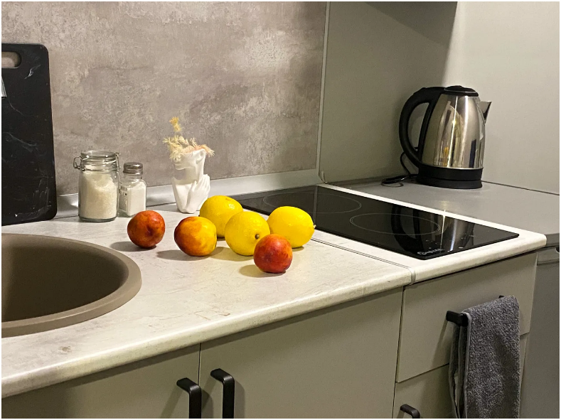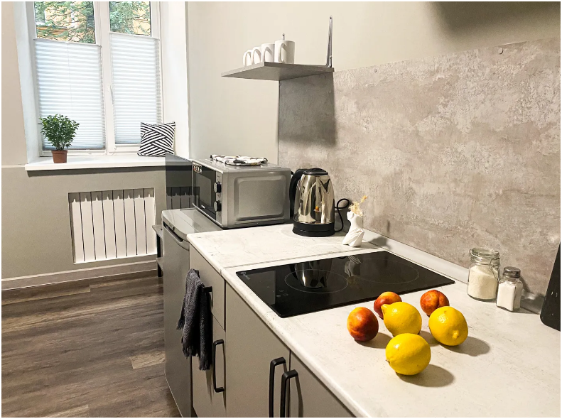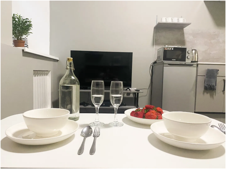 Апартаменты оборудованы всем необходимым: холодильник, электрическая плита, микроволновая печь, чайник, фен, стиральная машина, утюг, питьевая вода. Есть все для комфортного проживания, вся необходимая посуда для приготовления еды, постельное бельё и полотенца.
