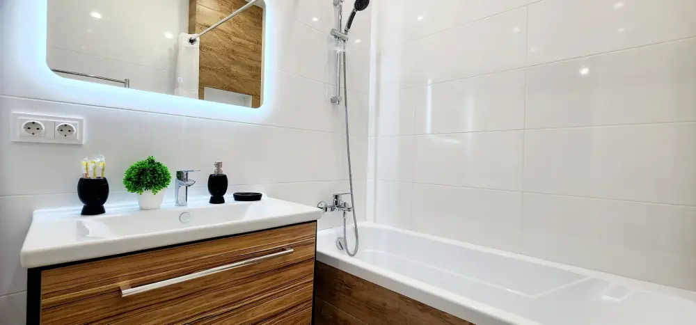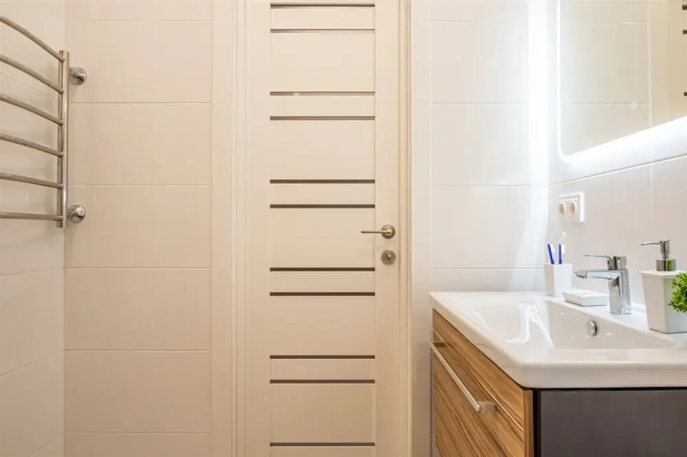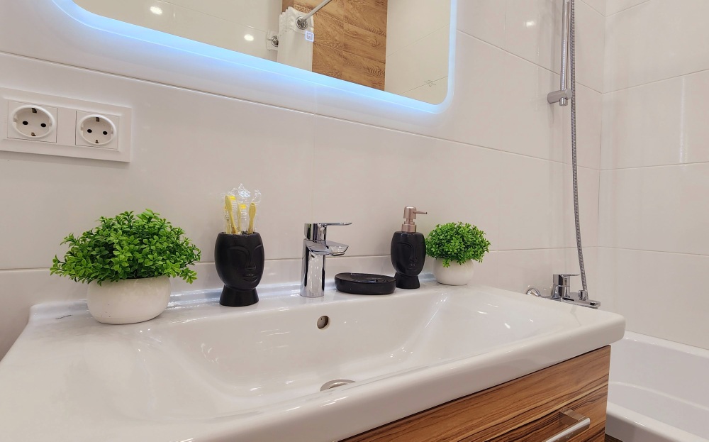 - Отдельная спальня с двухместной кроватью и смарт телевизором