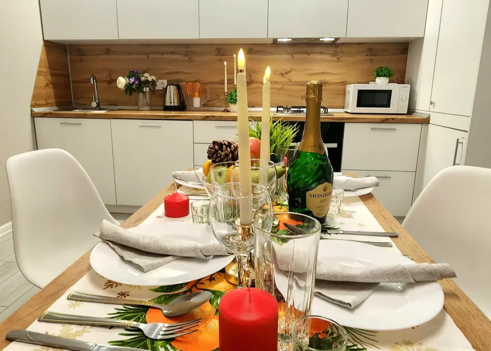 - Тарелки, кружки, бокалы, стаканы, ножи, вилки, ложки, кастрюля, сковорода, штопор и т. п.