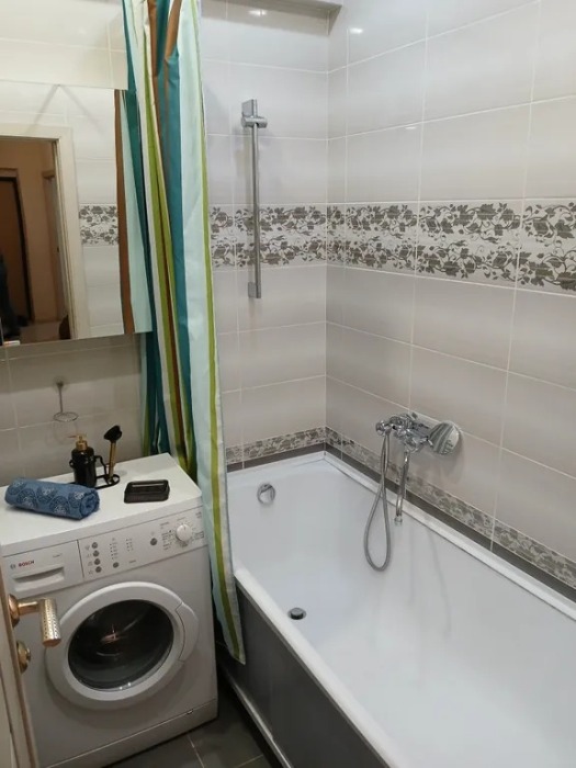 В квартире есть все необходимое для комфортного проживания: кровать, шкаф, рабочий стол, телевизор, кухня со всей необходимой техникой и посудой, Wi-Fi, собственный санузел с ванной и стиральной машиной. Рядом находится парковка. По запросу предоставляется трансфер, возможен прокат авто.