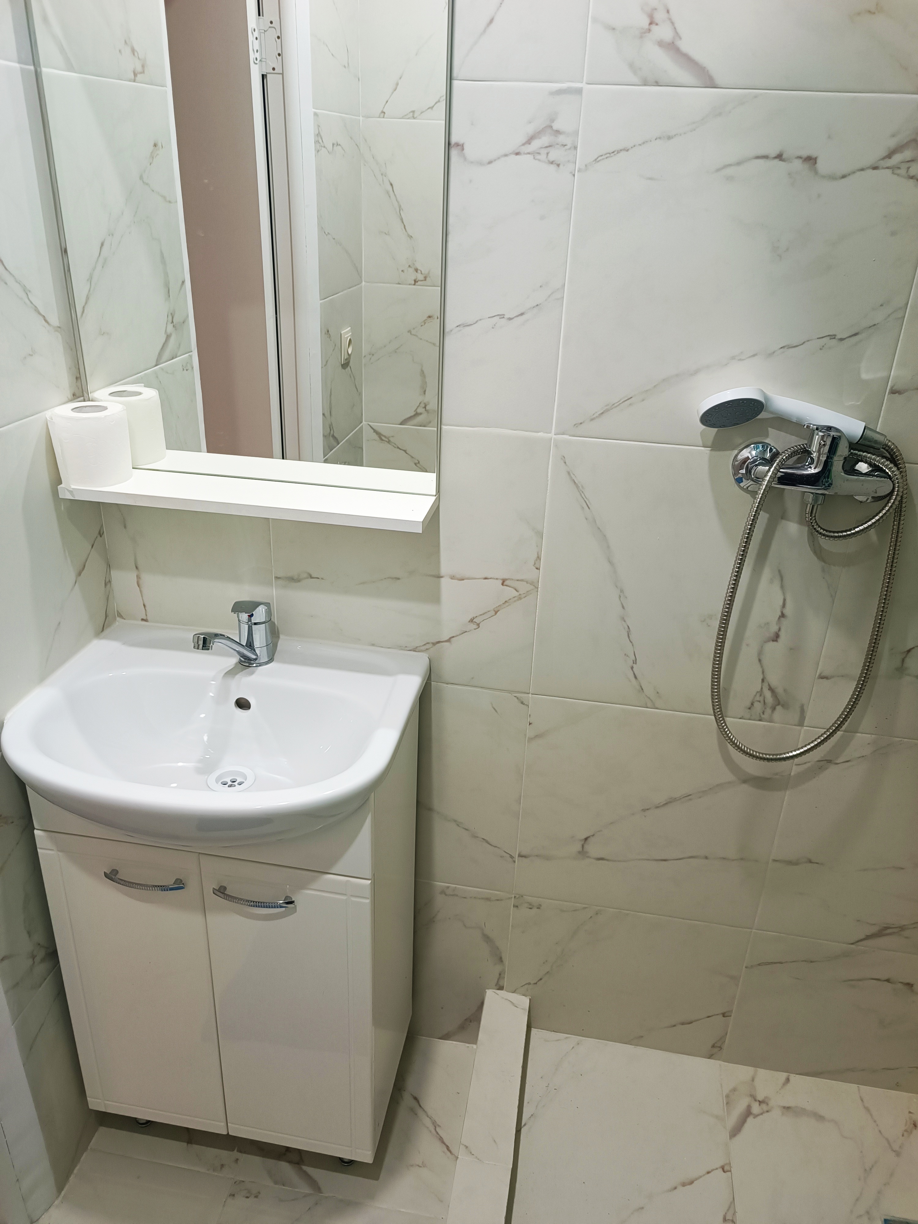 Студия №7 с двуспальным раскладным диваном у станции МЦД-D4 «Железнодорожная»: 2-й этаж 2-этажного жилого дома.
