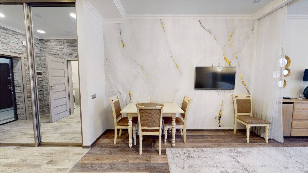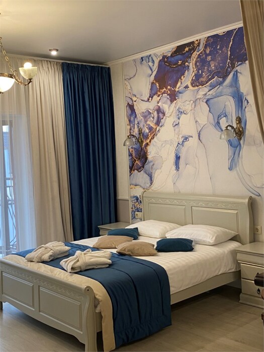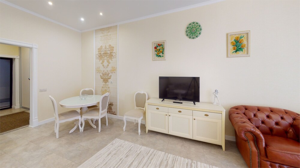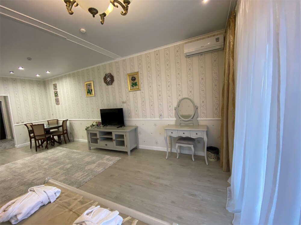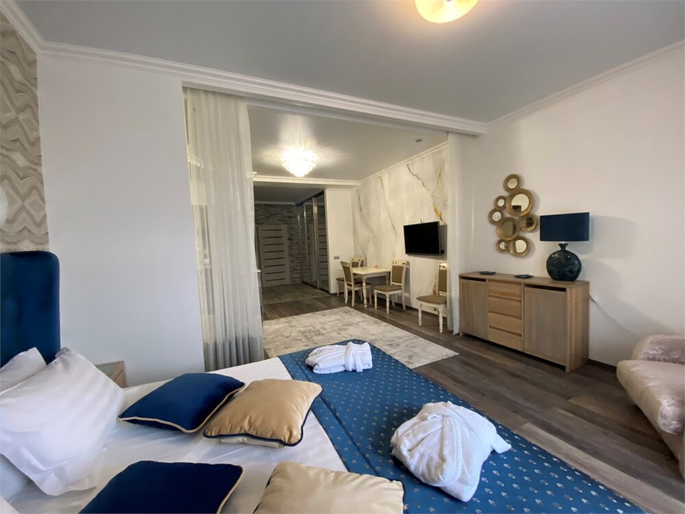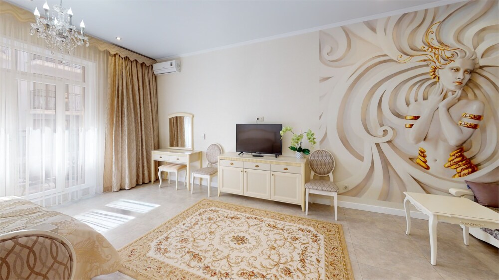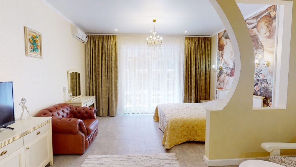 Гостям предлагается размещение в светлых апартаментах с балконом, зоной сна (большая двуспальная кровать и раскладной диван с ортопедическим матрасом), обеденной зоной и гостиным уголком, телевизор с плоским экраном со спутниковыми каналами, кондиционер, бесплатный Wi-Fi.