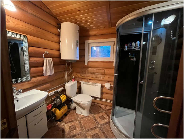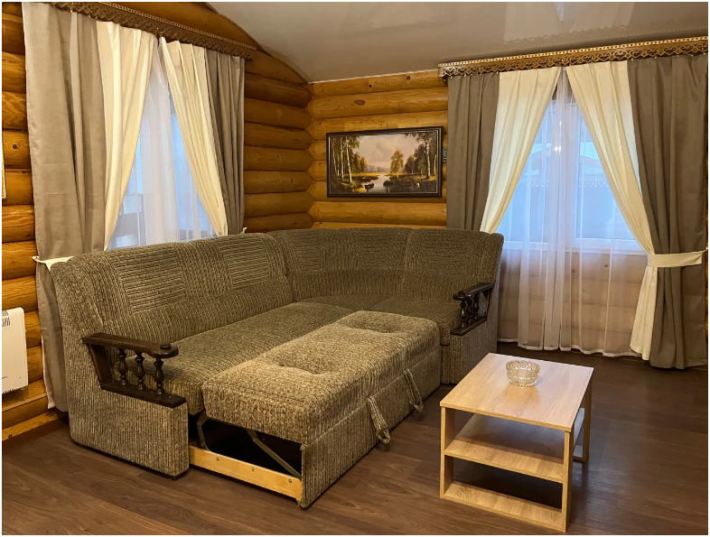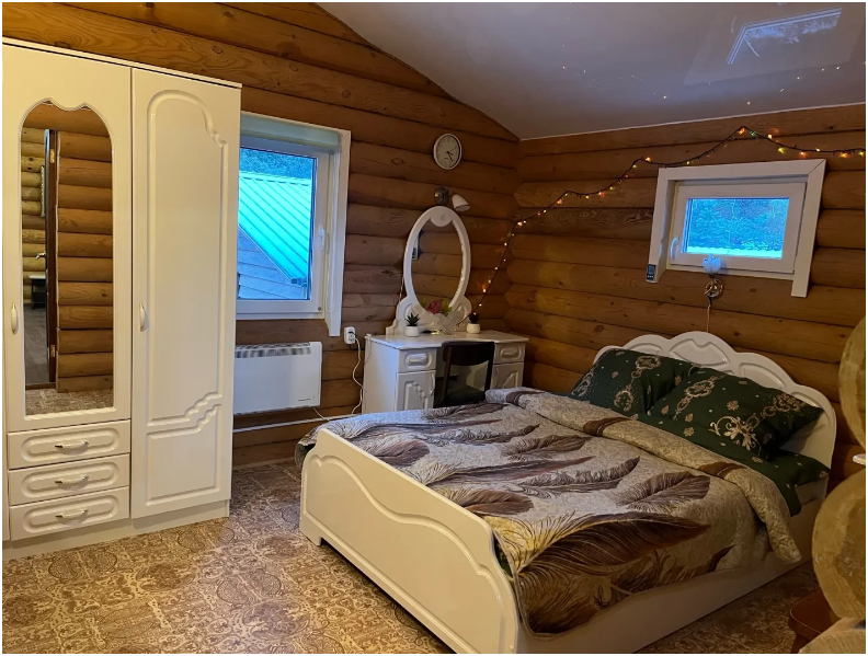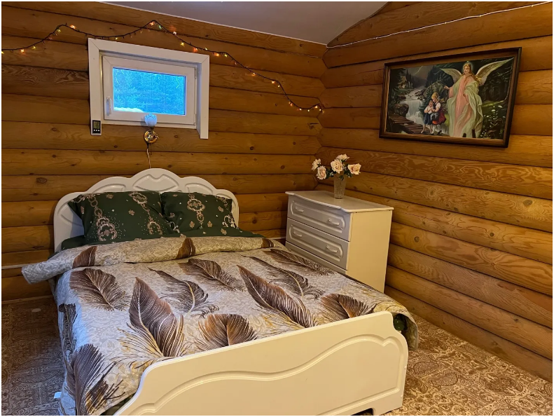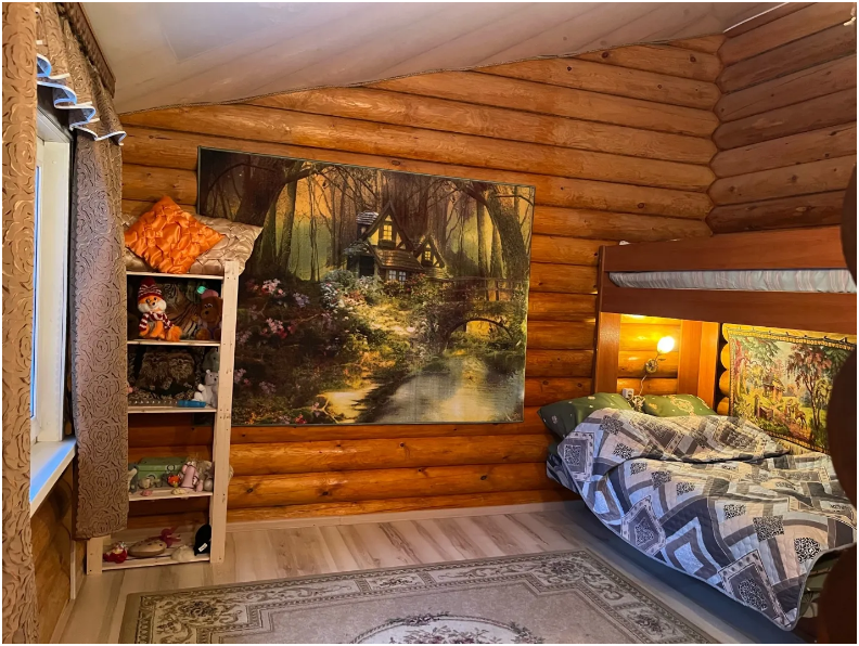 Большой, бревенчатый, но очень уютный дом, для душевного покоя. Придомовой участок огорожен высоким забором, есть зона барбекю с мангалом, коптилкой и казаном, уютная беседка, рядом с беседкой летний большой фонтан с детским бассейном. На огороженной территории есть заезд для двух авто.