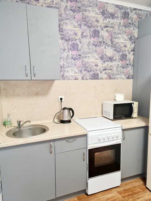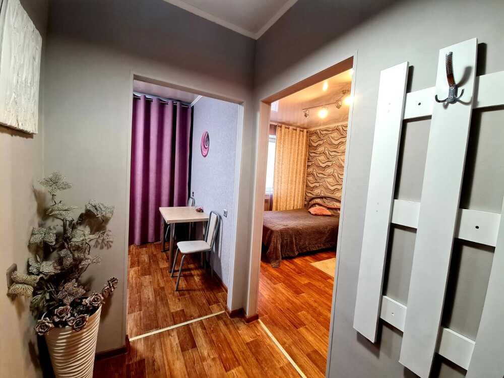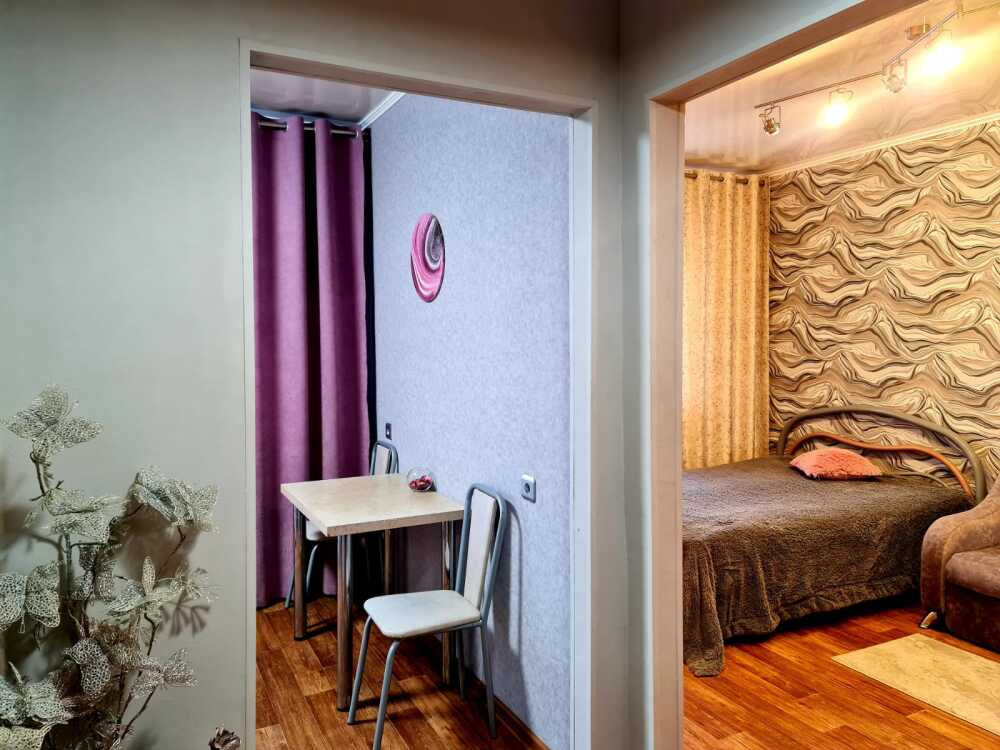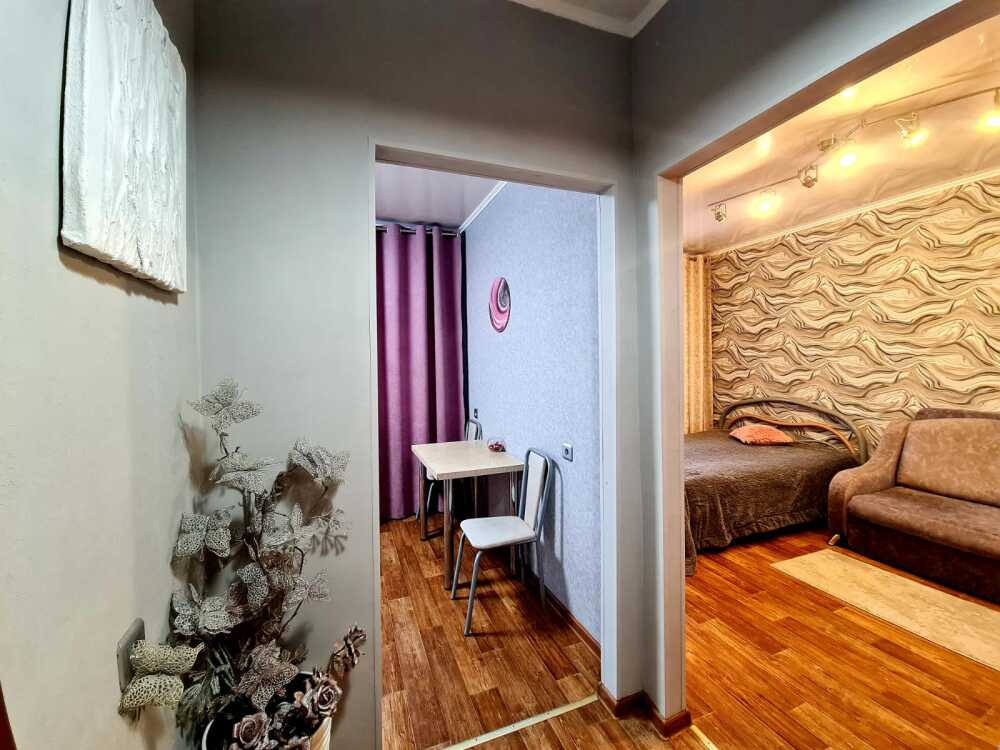 В квартире имеется всё для комфортного проживания: двуспальная кровать, диван, интернет, фен, утюг, гладильная доска, шкаф. Кухня оборудована для самостоятельного приготовления пищи. Индивидуальное отопление, постельное белье, балкон с прекрасным видом.