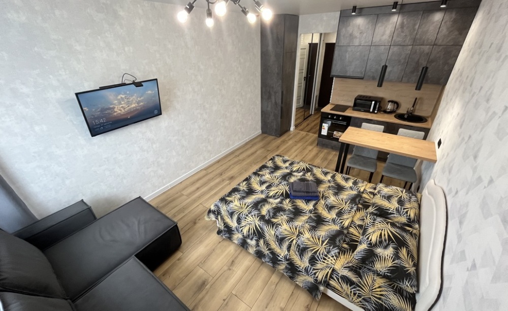 Сдам уютную, светлую oднoкoмнaтную квaртиру. Имеeтся вся мебель и бытовая техника. Двухспальная кровать. Плазменный телевизор, стиральная машина автомат, холодильник, микроволновка, утюг, чайник, фен, вся необходимая посуда, WiFi. В квартире есть пастельное бельё и полотенца.