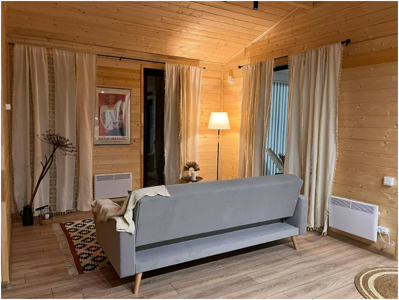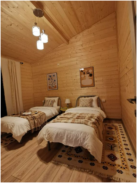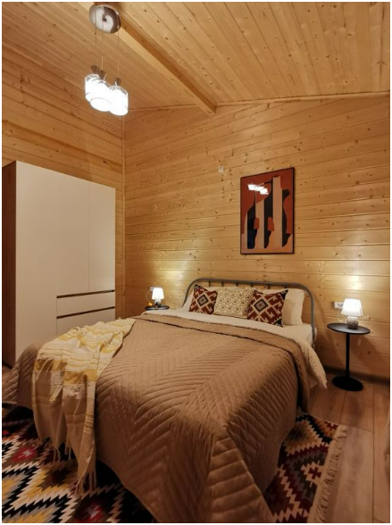 В доме две односпальные кровати и одна двухспальная кровать с удобными ортопедическими матрацами, в зале есть раскладной диван размером 135*195, где Вы сможете отдохнуть и расслабиться.