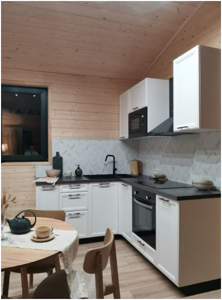 На кухне Вы найдете все необходимое для готовки - варочную панель, духовой шкаф, чайник, микроволновую печь, холодильник.