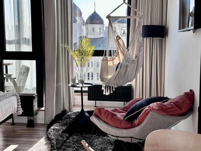 К созданию апарт-отеля привлечены архитектурное бюро и отельный оператор, чтобы разработать качественный и продуманный проект. Гости отеля смогут выбрать из 3 категорий номеров, покачаться на качелях у панорамных окон и поужинать в номере.
