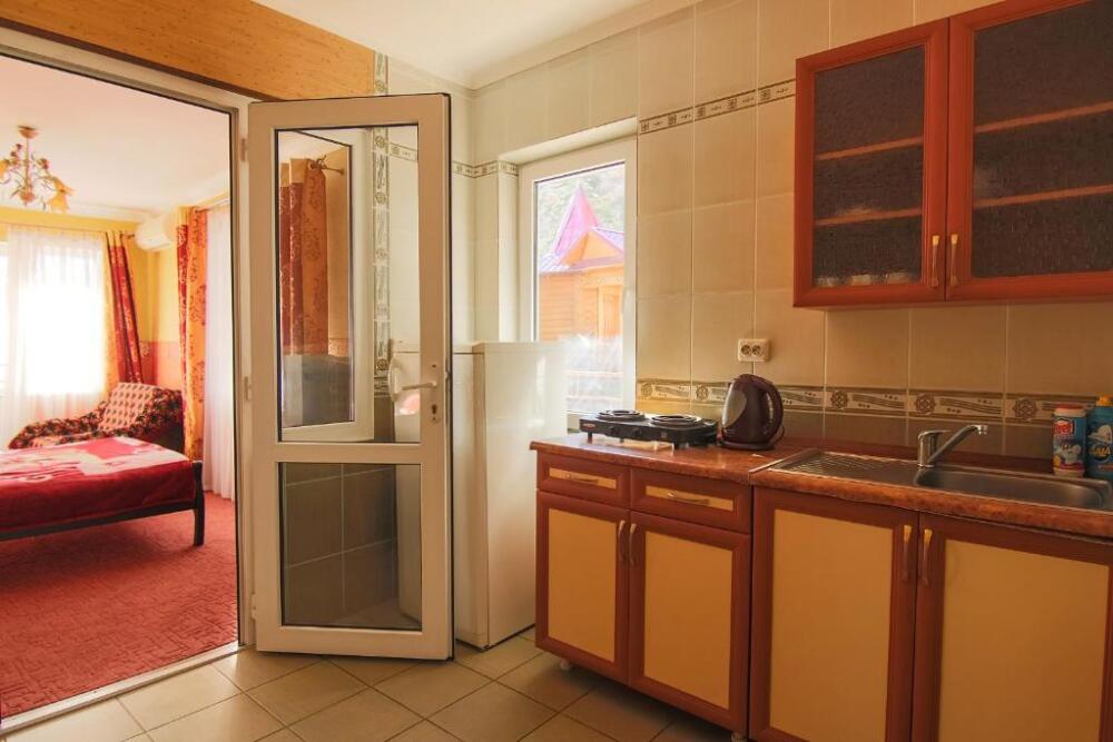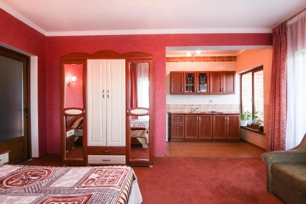 Предлагает своим гостям для размещения на отдых и комфортные комнаты, и места отдыха с беседками на закрытой, очень зеленой территории, автостоянку, мангал.