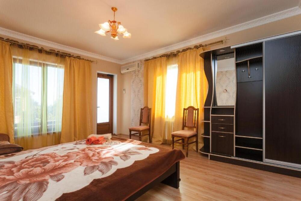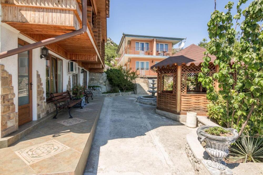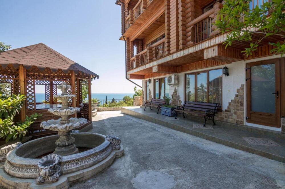 Территория: своя автостоянка, детская площадка с качелей и батутом во дворе, прекрасное оборудованное место с кирпичной барбекюшницей для приготовления блюд на огне или углях. Множество зон отдыха как с беседками, так и просто среди зелени, очень большое количество южной растительности, декоративные статуи и дорожки, террасы и ступени, фонтан и прудик с водопадом.