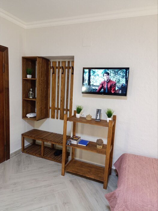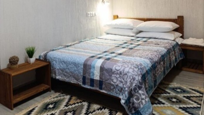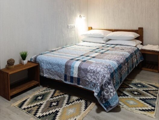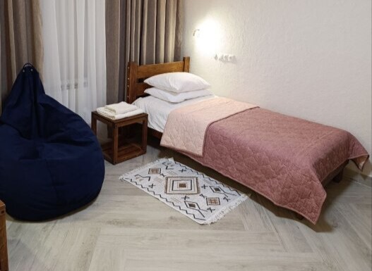 Номер 1 двухместный, прихожая, отдельный санузел, деревяные кровати с ортопедическими матрасами 90х200 см., гипоаллергенные подушки, шерстяные одеяла, сушилка для обуви, сенсорное мусорное ведро, фен для волос, бактерицидный рециркулятор для обеззараживания воздуха, общая кухня-столовая 22,9 м2. (цокольный этаж)