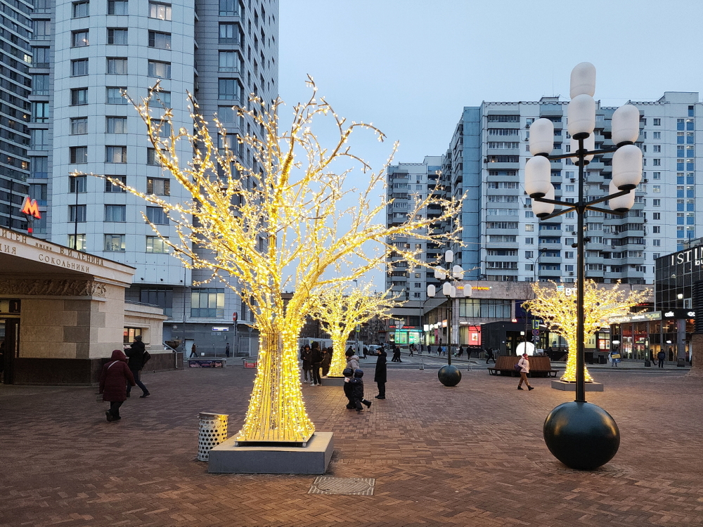 Напротив дома сквер Московского метро, Храм Воскресения Христова в Сокольниках и ТЦ Сокольники.