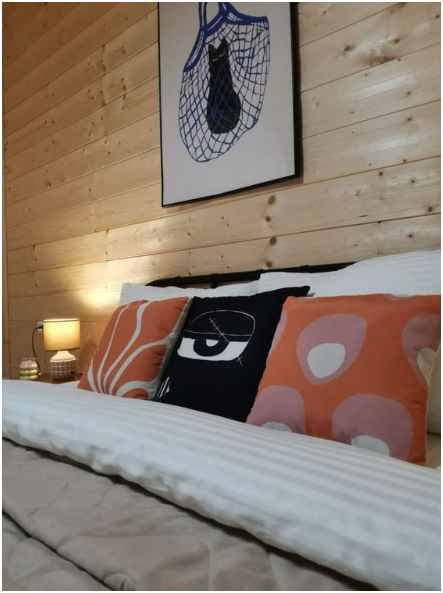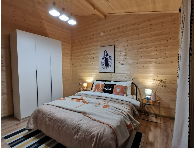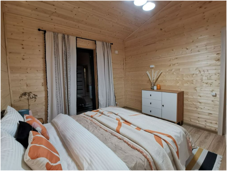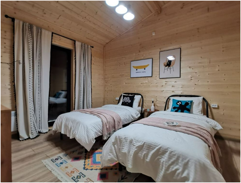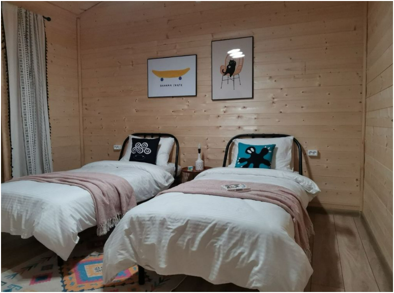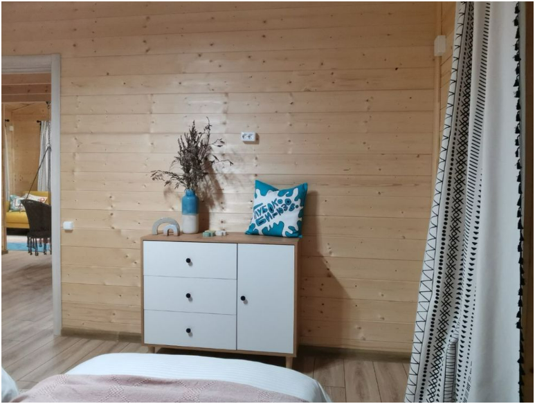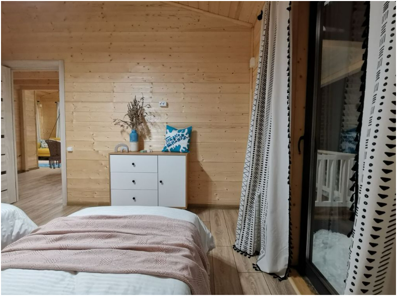 В доме две односпальные кровати и одна двухспальная кровать с удобными ортопедическими матрацами, в зале есть раскладной диван размером 135*195, где Вы сможете отдохнуть и расслабиться.