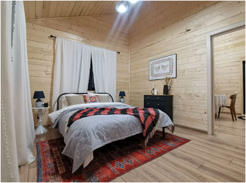 В доме две односпальные кровати и одна двухспальная кровать с удобными ортопедическими матрацами, в зале есть раскладной диван размером 135*195, где Вы сможете отдохнуть и расслабиться.