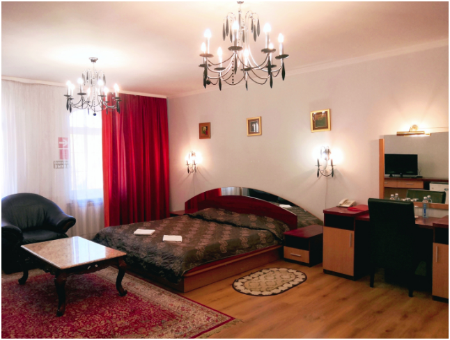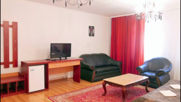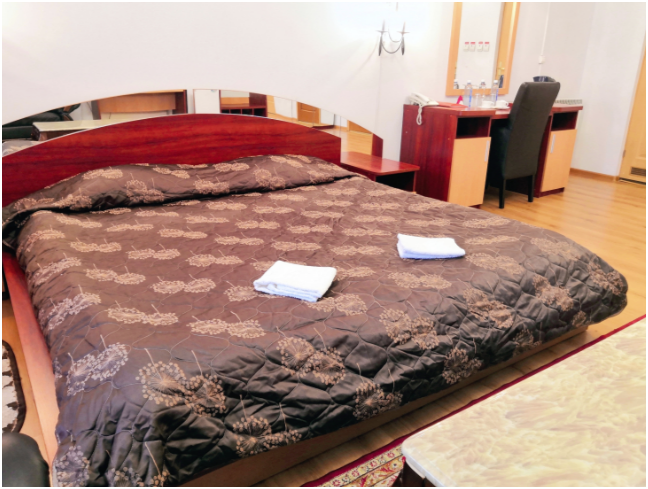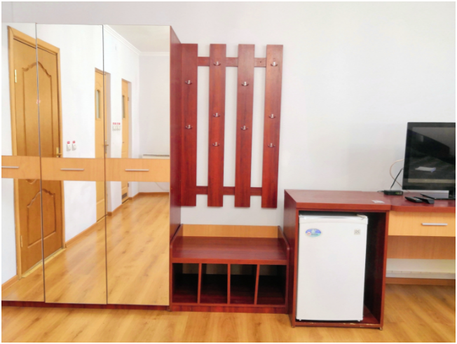 В числе других удобств - большие двухспальные кровати размеров «queen size», телевизор с плоским экраном, необходимая мебель, холодильник, собственная ванная комната с бесплатными туалетными принадлежностями, феном и прочими удобствами.
