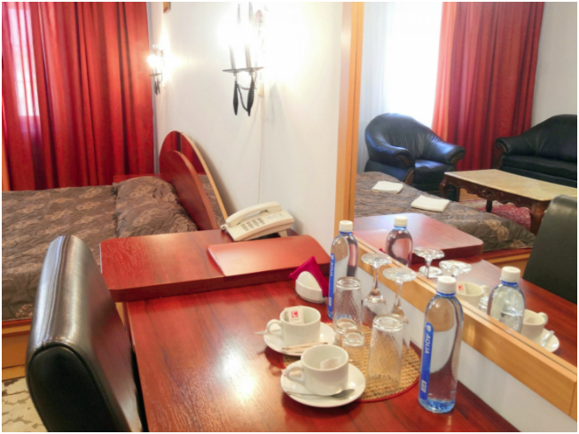 Завтраки в гостевом доме подаются в зале и в номер, на территории имеются магазины, а так же работает бар.