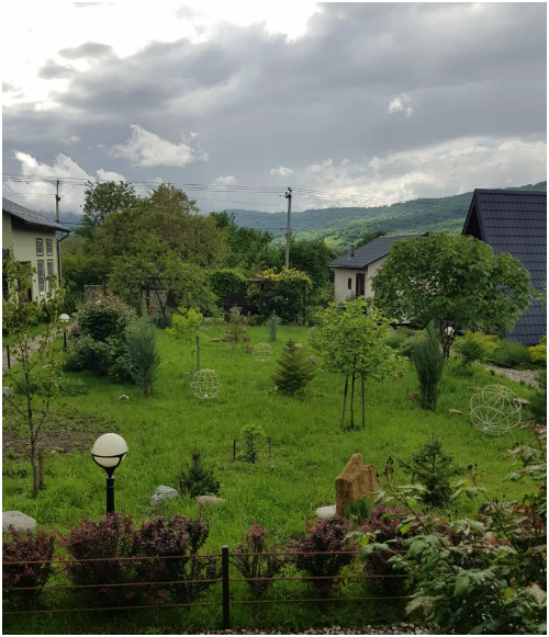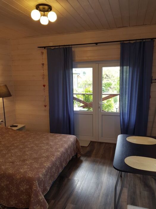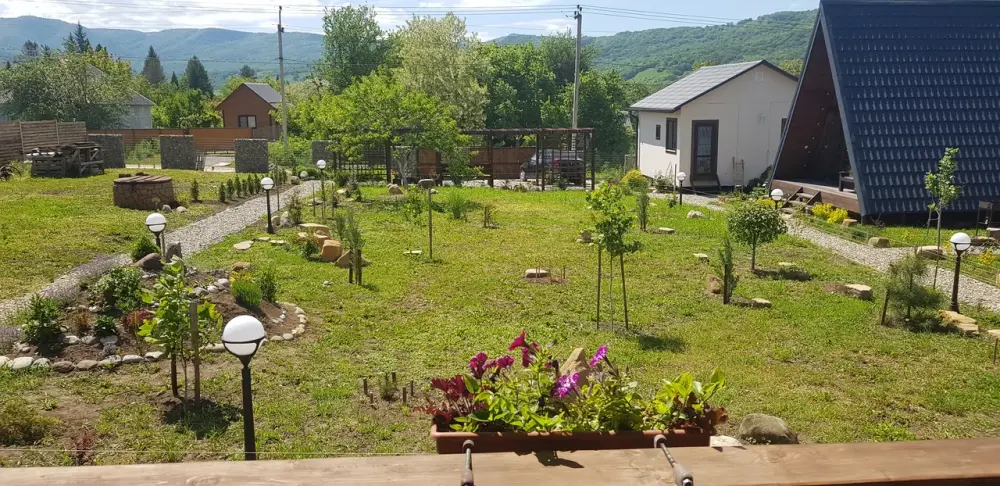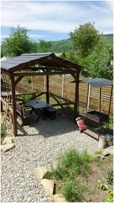 У каждого домика есть своя беседка и мангал. На территории баня на дровах (платно). Есть детская площадка. Предоставляются места для парковки. По согласованию с хозяевами возможно размещение с животными. Из окон открывается вид на сад с розами и горы. Рядом находятся старый каменный мост, водопады и Савранская канатная дорога.