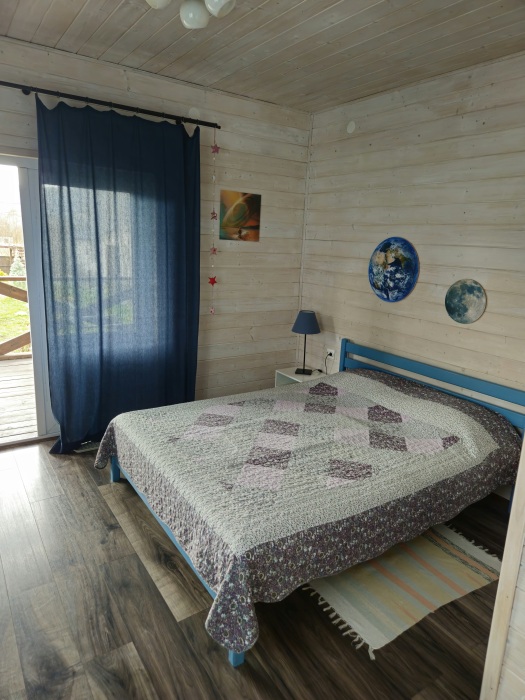 В домике нет раздельных комнат, есть два двуспальных места, на первом и втором этаже, в домике есть сплит система, телевизор, кухонная зона с газовой плитой, микроволновая печь, холодильник, посуда, фен, душ сан узел.