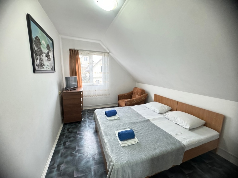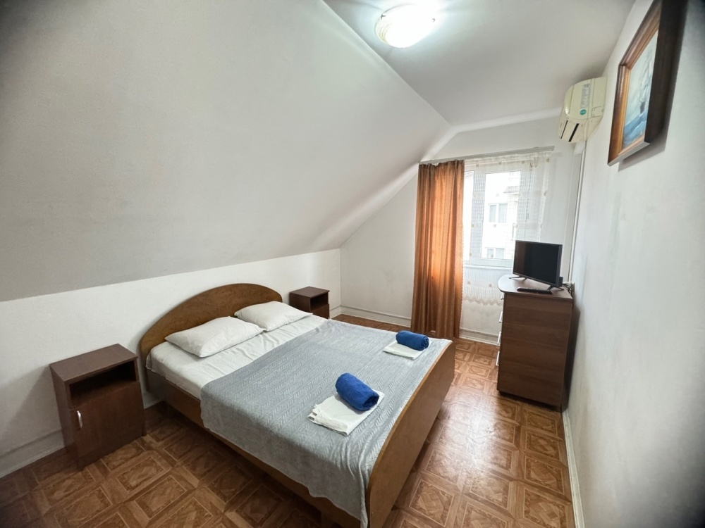 Гостевой дом находится на закрытой зеленой территории в 300 метрах от побережья. Для отдыхающих предусмотрена общая кухня, во дворе мангальная зона.