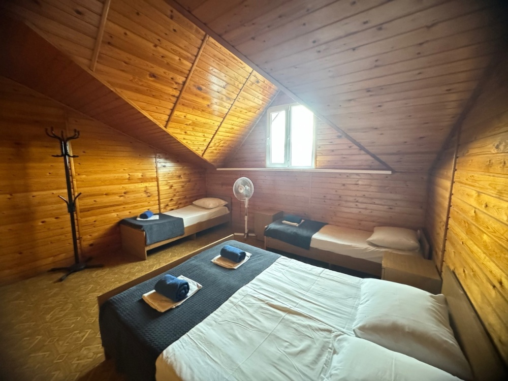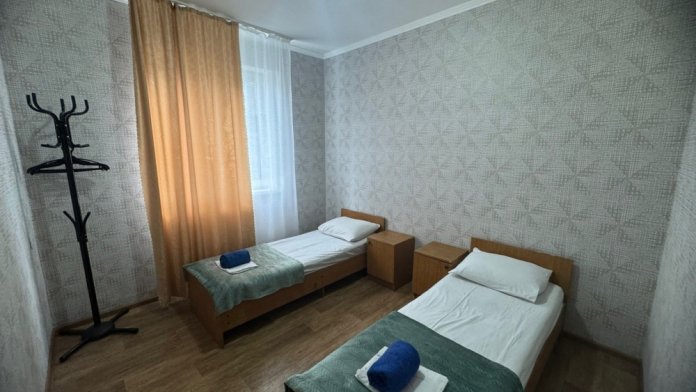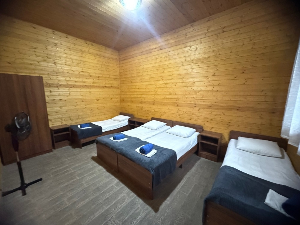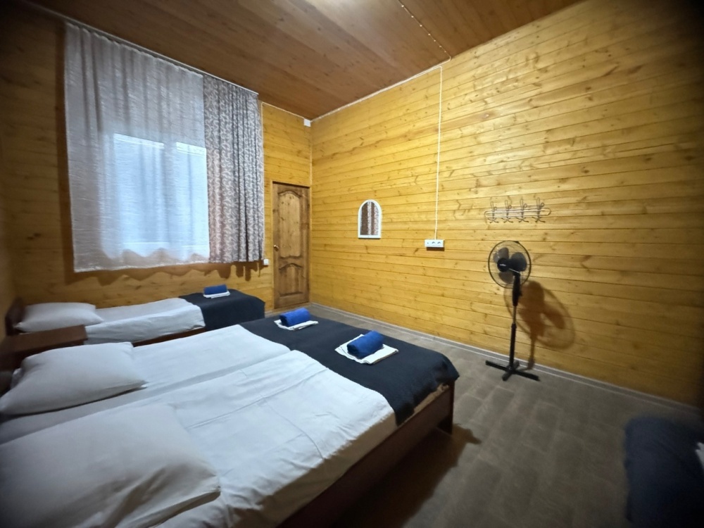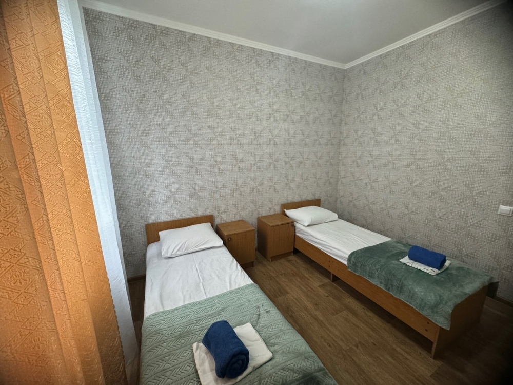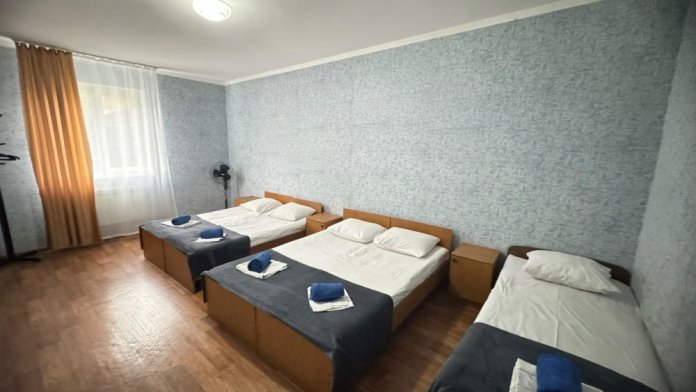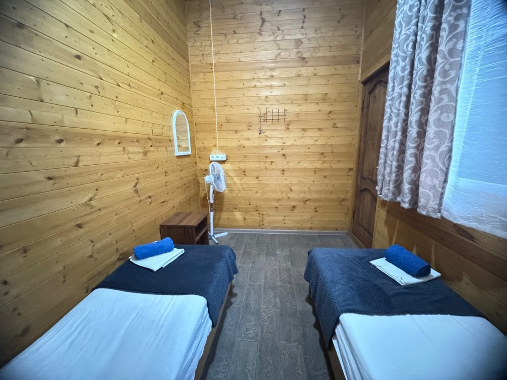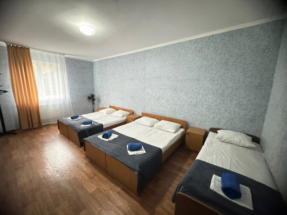 В номере имеется кровати, вешалка, тумбочки и вентилятор. Общая кухня и санузел на этаж.