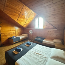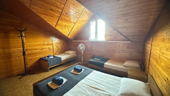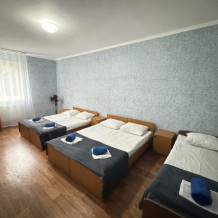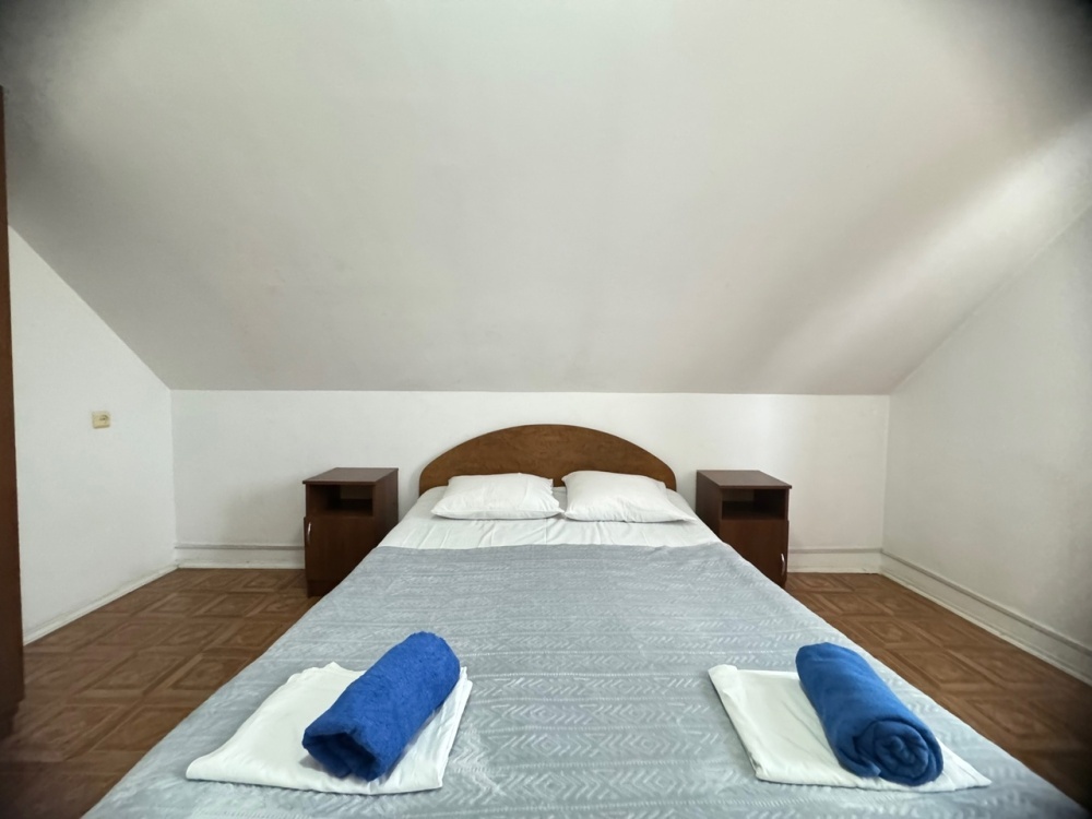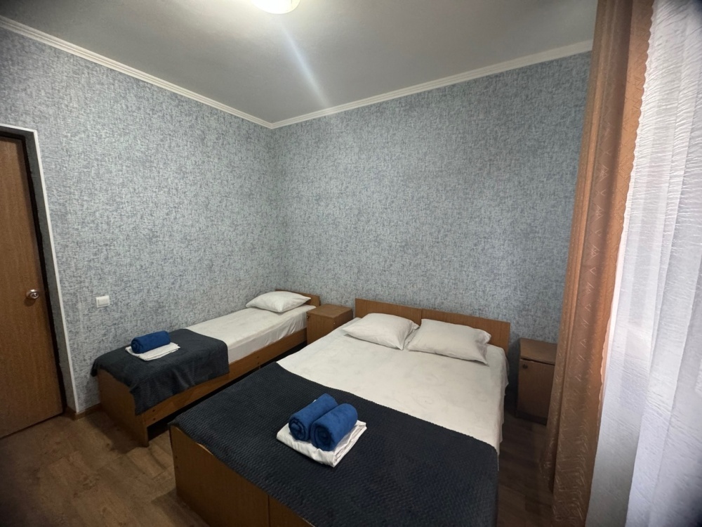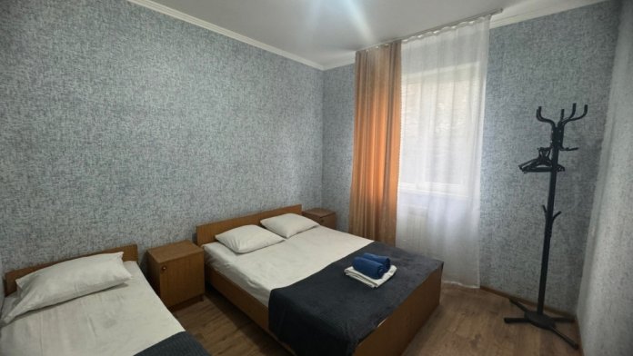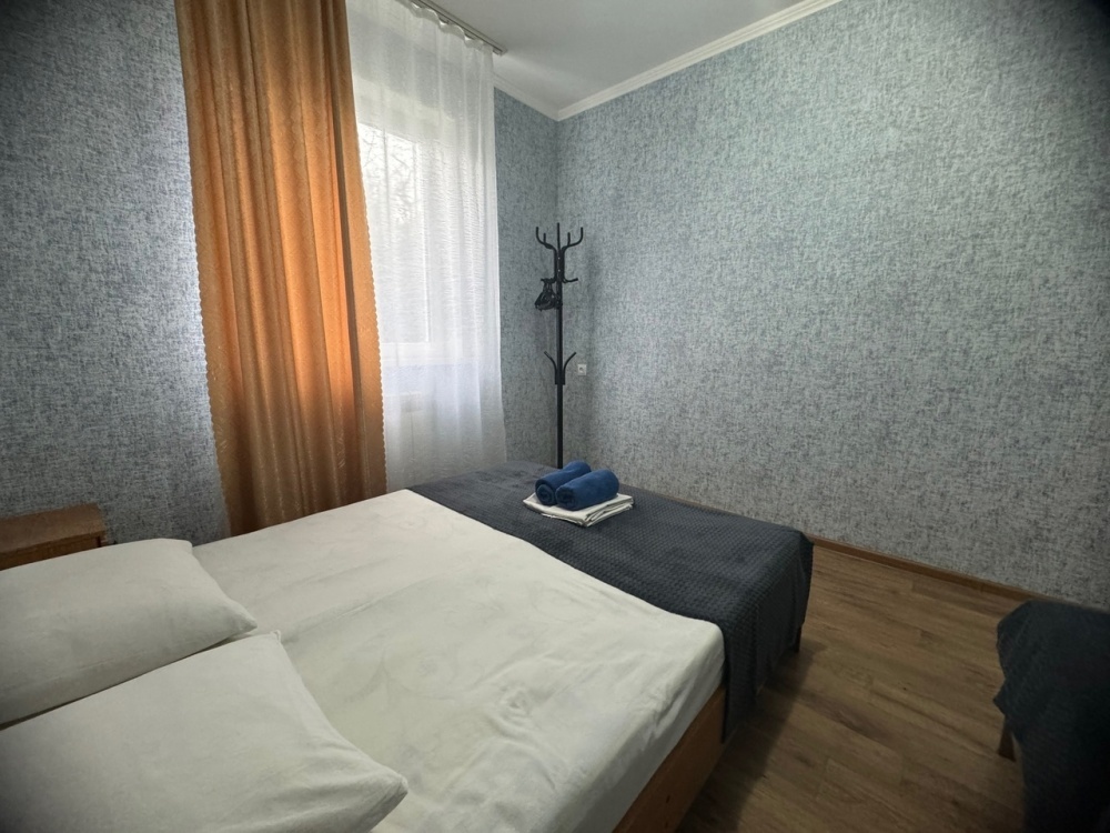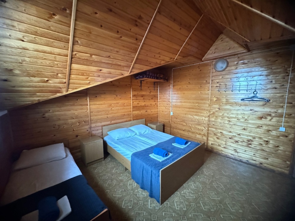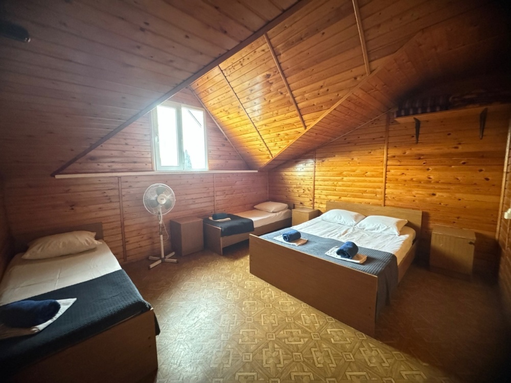 В номере имеется кровати, вешалка, тумбочки и вентилятор. Общая кухня и санузел на этаж.