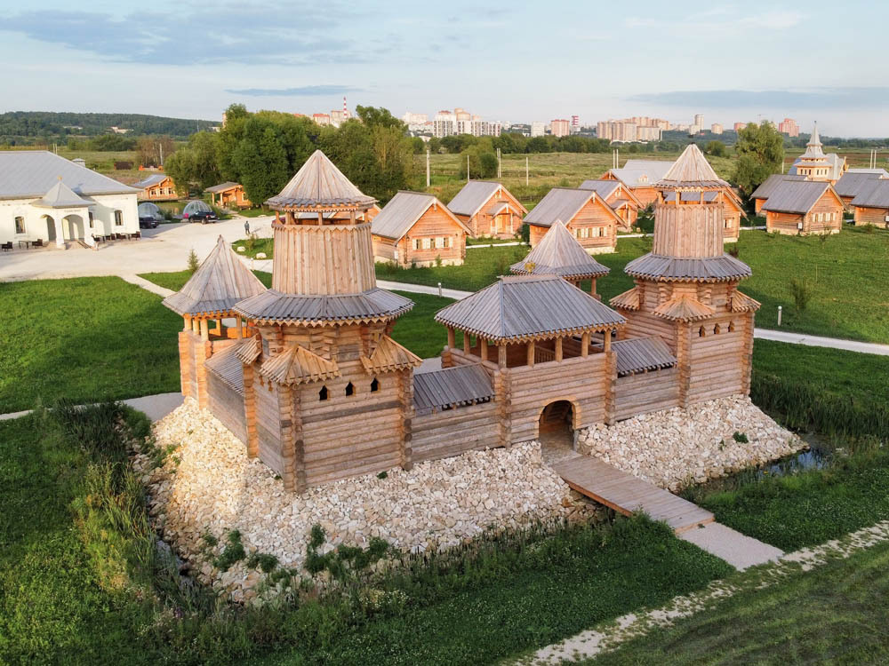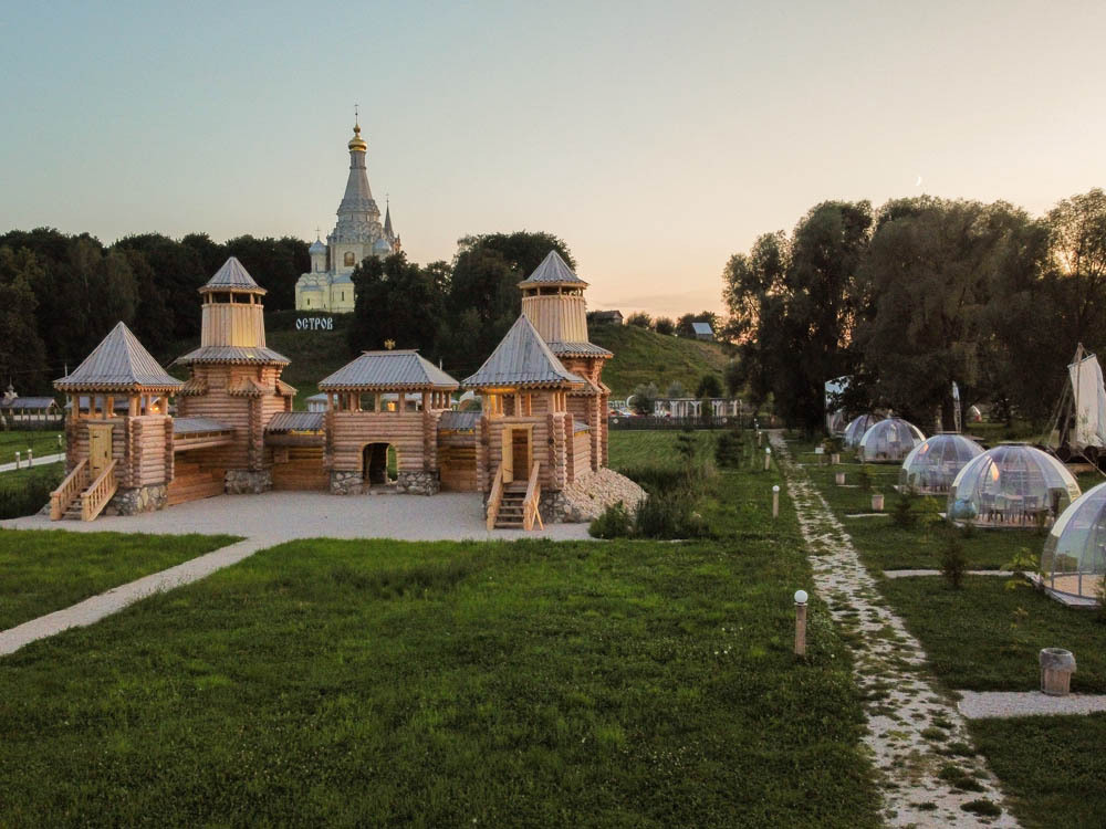 - Детинец. Смотровые башни, туннели, сторожевые посты, просторное внутреннее пространство для проведения различных мероприятий и даже традиционный ров подойдут для воплощения в реальность любых детских фантазий и активных игр. Вход для гостей парк-отеля «Остров» - свободный. Также, для Вашего удобства, возле Детинца располагаются уютные крытые иглу с личной мангальной зоной для идеальных гриль-поездок в сочетании с насыщенным досугом для детей.