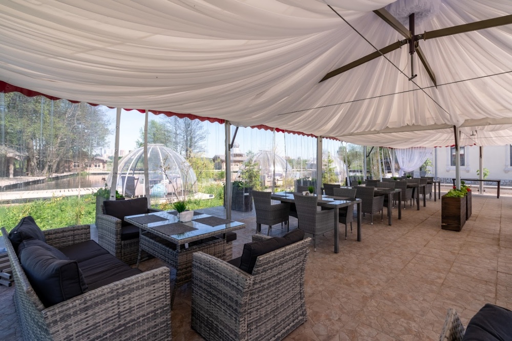 Уникальный просторный зал ресторана «Трапезная» на территории Крестьянской усадьбы, всего в 6 км от МКАД, идеально подходит для проведения различных мероприятий - от свадеб и торжеств до корпоративов и конференций.
