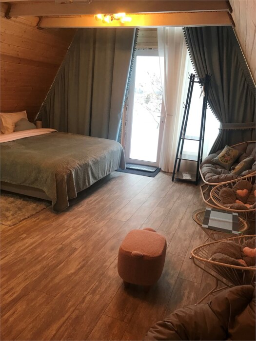 Каждый номер на 2 этаже оборудован двуспальной кроватью, шкафом, TV, кондиционером и персональной уборной; номера 1 этажа включают в себя двуспальную кровать, шкаф, TV и санузел с душевыми кабинами.