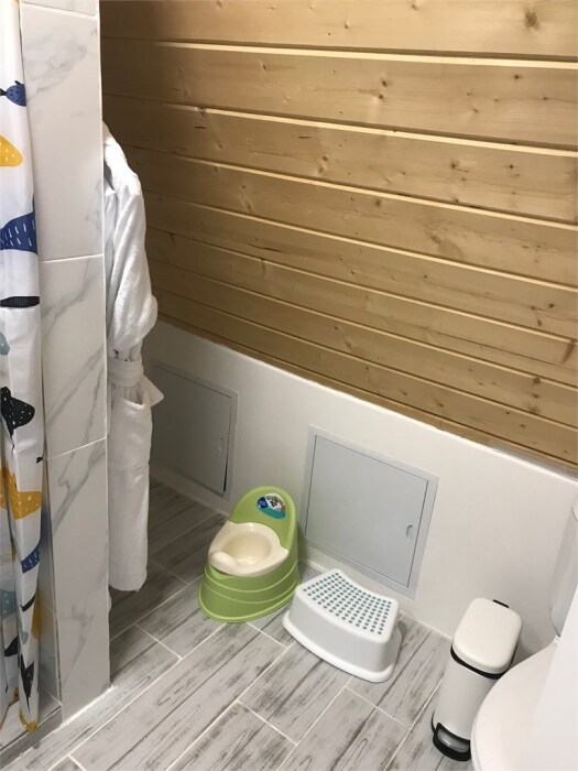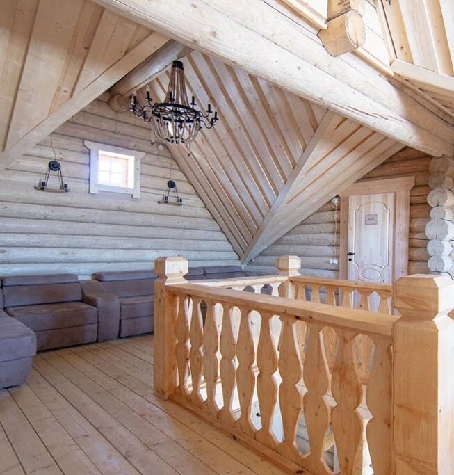 Часть изб также оборудована защитными детскими решетками для лестниц.