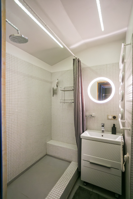 Есть все необходимое для комфортного проживания: стиральная машина, посудомоечная машина, бойлер (горячая и холодная вода круглосуточно), кондиционер, теплый пол (в зимнее время и межсезонье), фен, утюг, гладильная доска, полотенца, постельное белье, посуда для принятия и приготовления пищи, холодильник, чайник, микроволновка