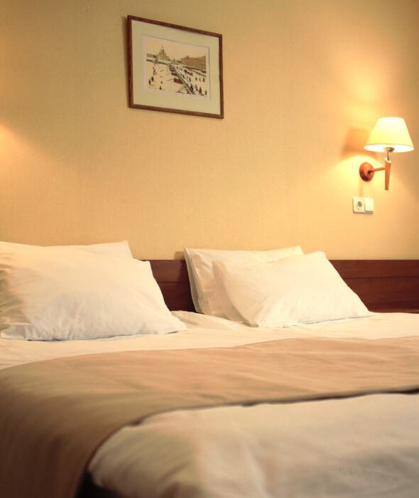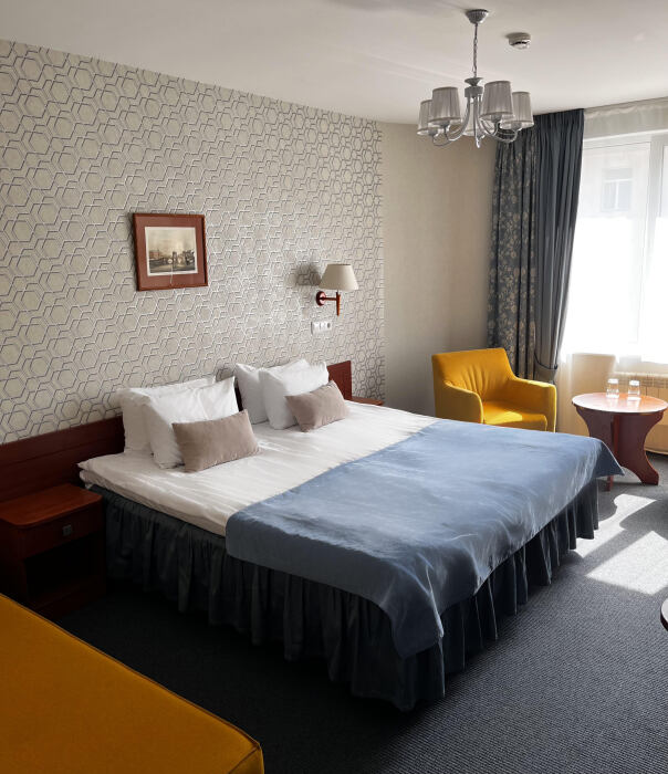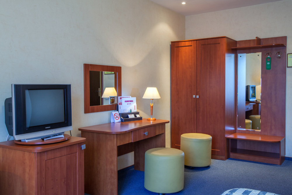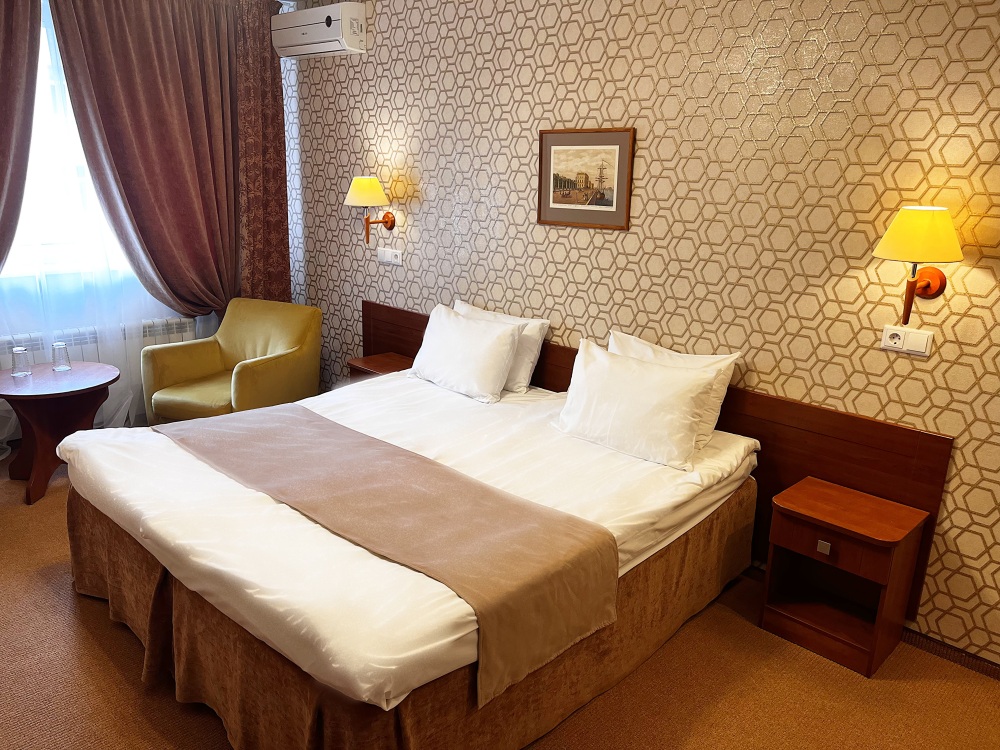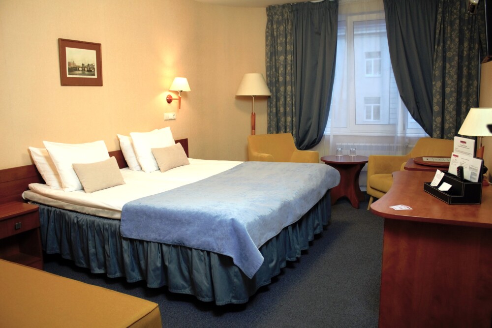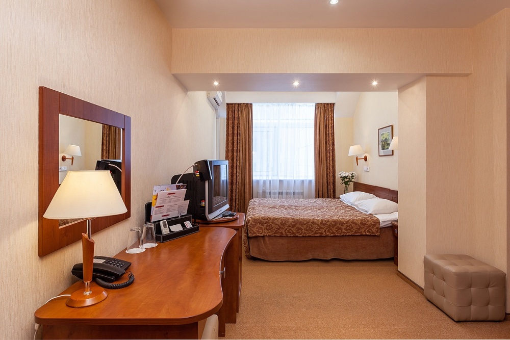 Двухместные номера стандартной планировки находятся на 3-ем и 4-ом этажах. Площадь номера от 18,5 до 21 кв.м. Двуспальная или две односпальных кровати. Номер оборудован: феном, встроенным холодильником, телевизором, письменным столом с письменными принадлежностями.