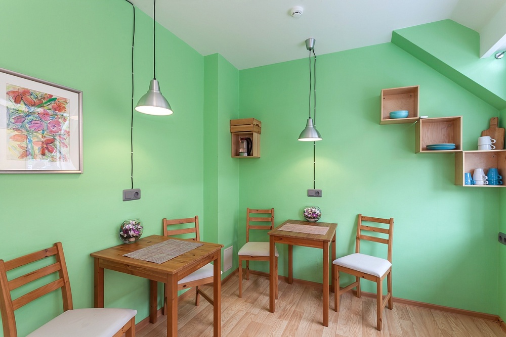 Номера площадью от 22 кв.м. до 25 кв.м. для проживания одного, двух или трех человек. Двуспальная или две односпальных кровати, с возможностью установки третьей односпальной кровати для взрослого или детской кроватки.