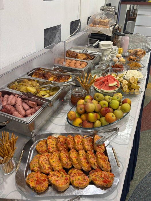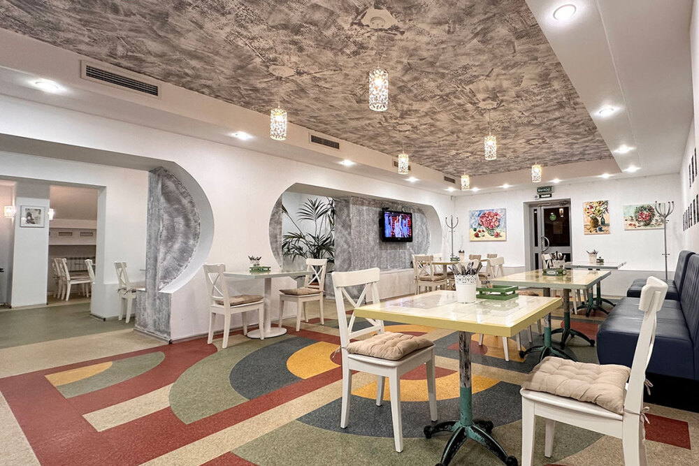 Завтраки по системе «Шведский стол» подаются в кафе Отеля ежедневно. В распоряжении Гостей обеды и ужины по меню европейской кухни.