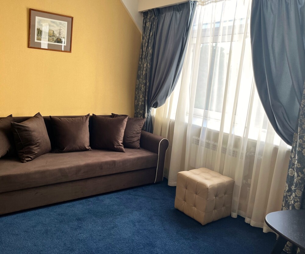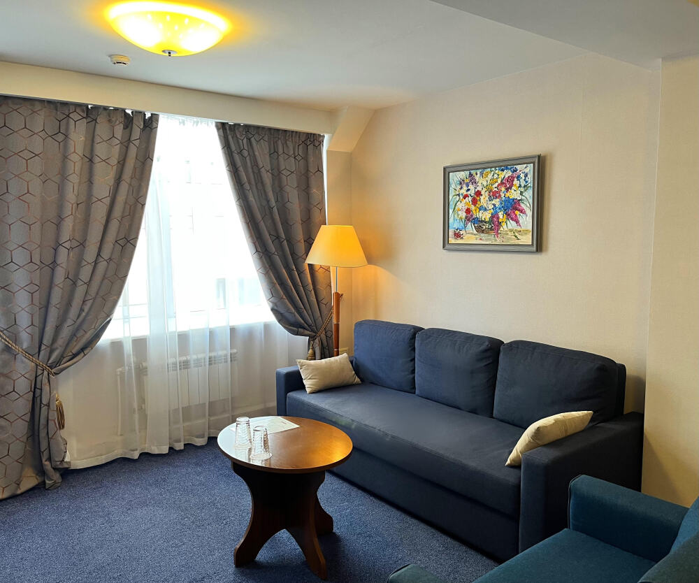 Современный номер первой категории улучшенной планировки с дополнительной зоной отдыха (журнальный столик, кресла или диван).