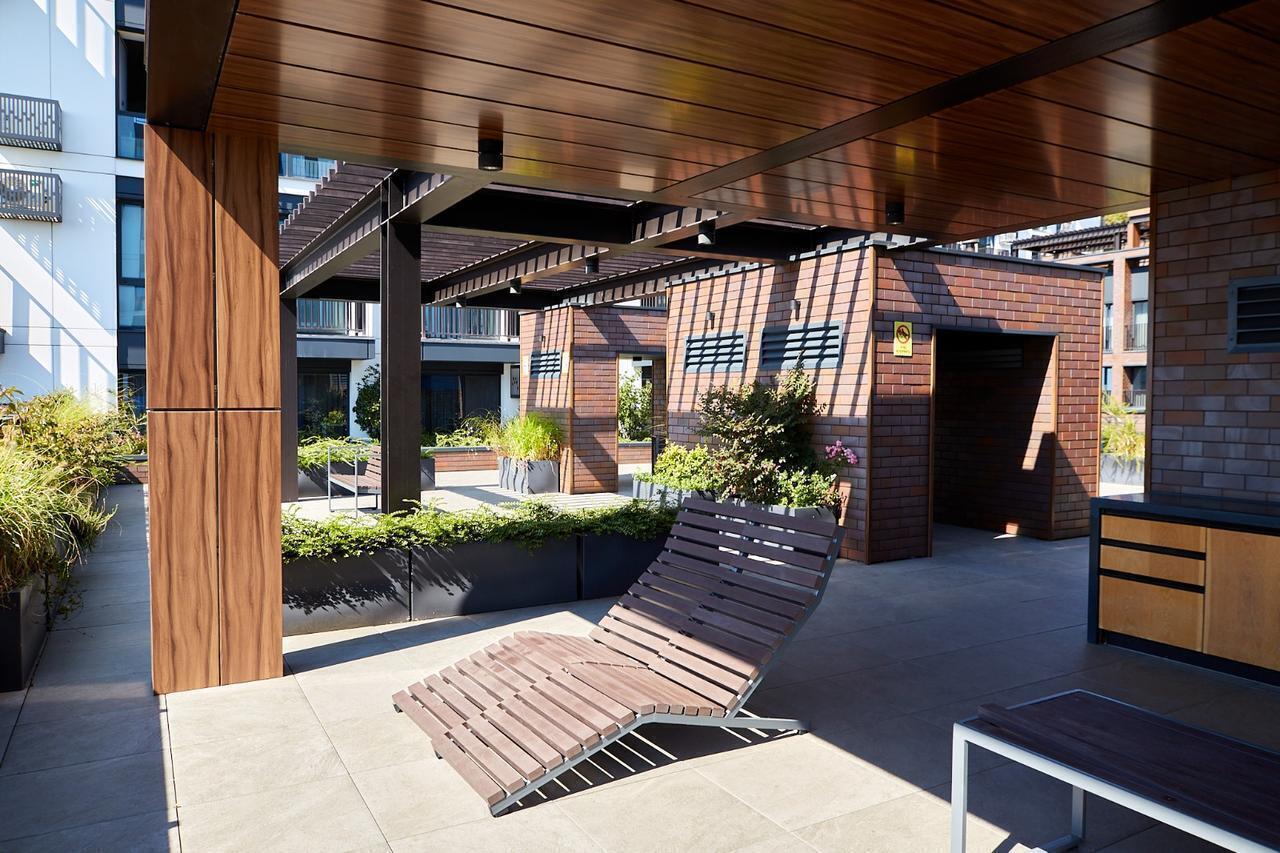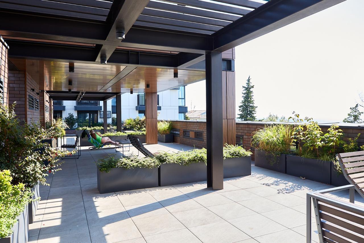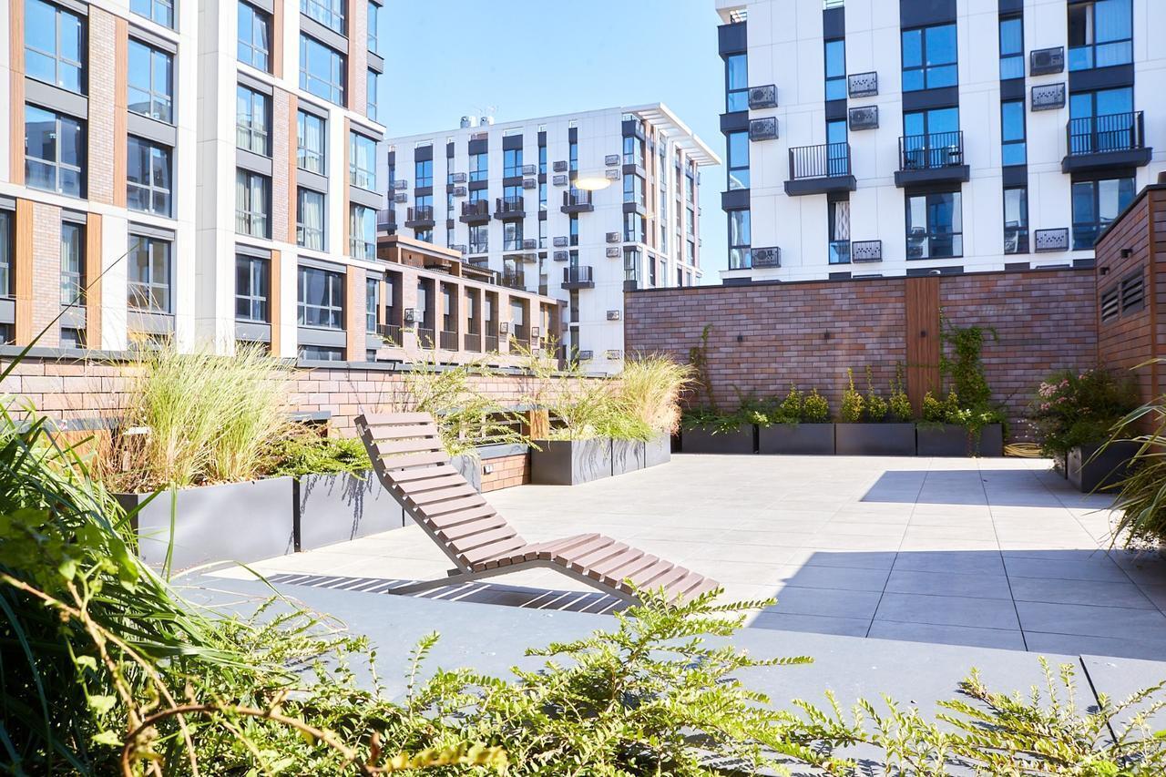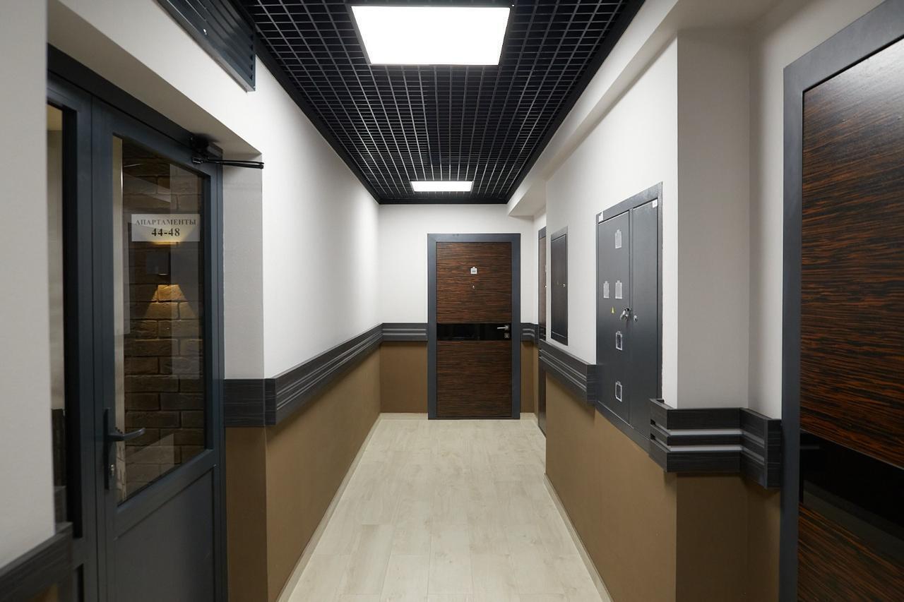 На благоустроенной охраняемой территории апартаментного комплекса, спортивные площадки, магазины, кафе.