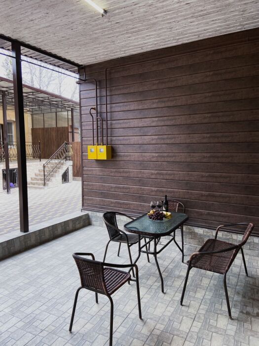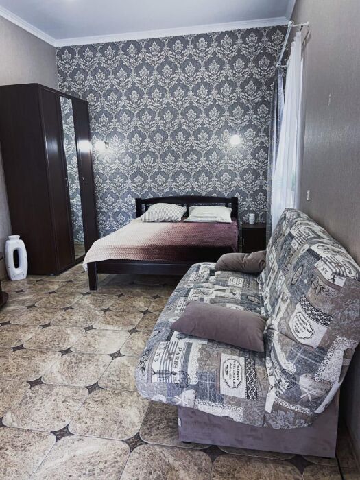 К услугам гостей 1-комнатные и 2-комнатные апартаменты в одноэтажном домике с большим балконом. Ремонт 2022 года, индивидуальное отопление, тёплый пол, свой закрытый двор, зона отдыха и барбекю.