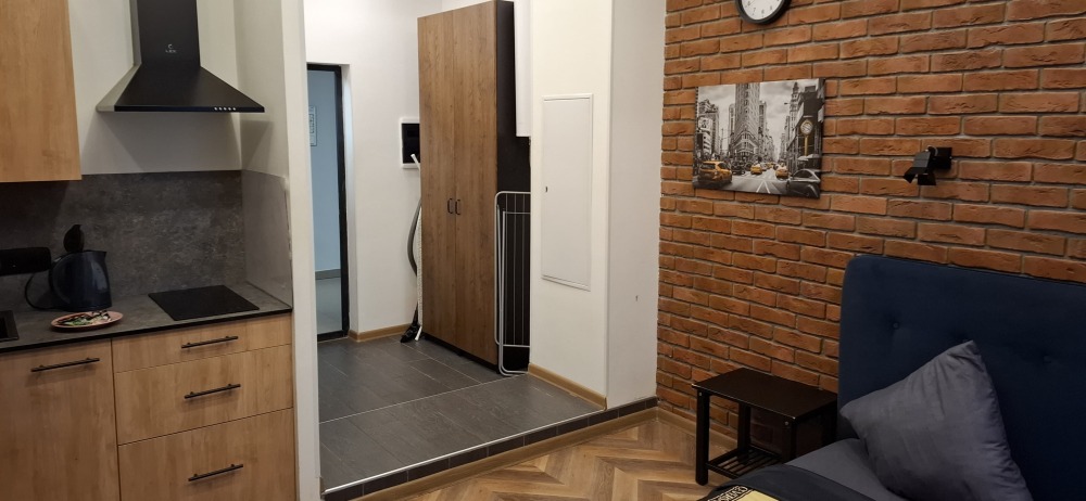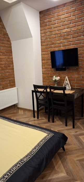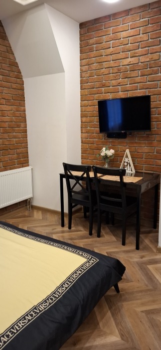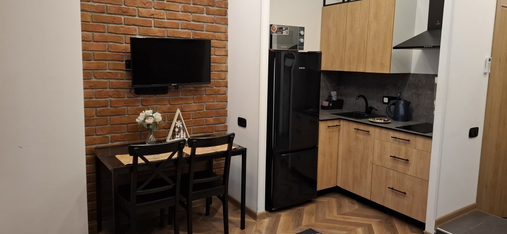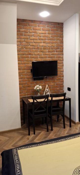 - Комнаты: одна комната-студия с удобной кроватью и рабочей зоной, включающей стол и стулья.
