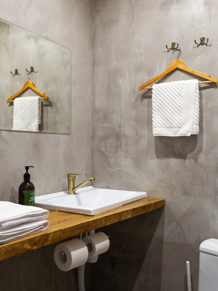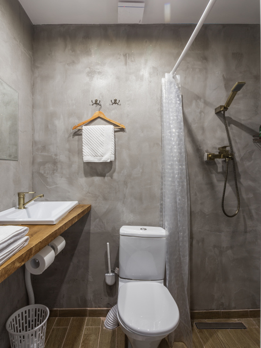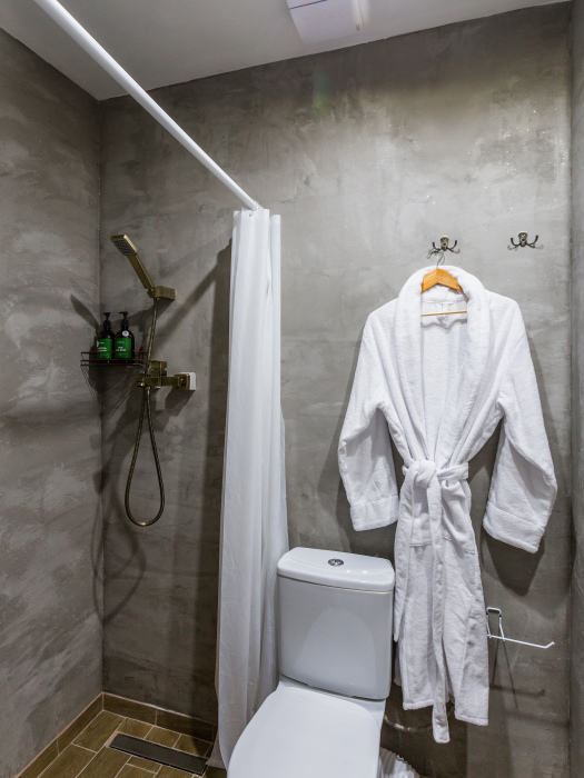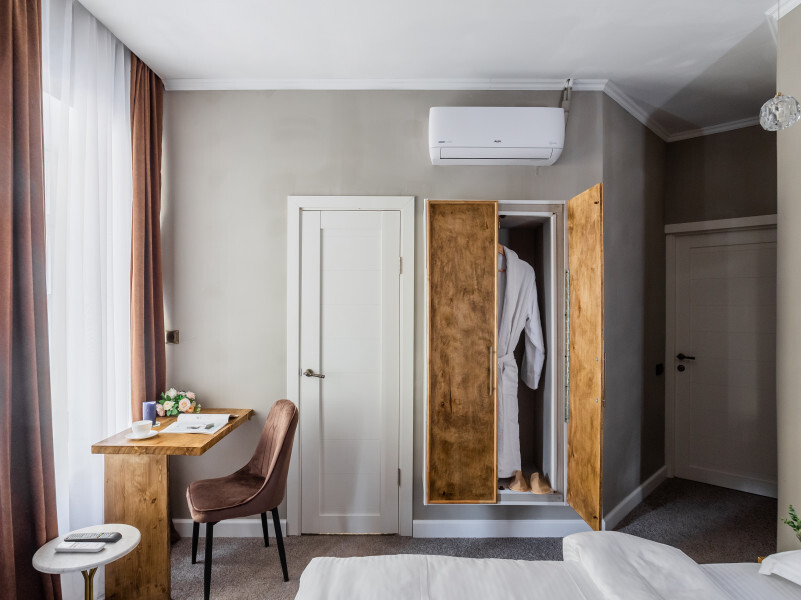 В каждом номере есть все необходимое для комфортного пребывания: большая двуспальная кровать с натуральным постельным бельем, рабочая зона, ванная комната со всеми принадлежностями, кондиционер, телевизор и скоростной Wi-Fi.