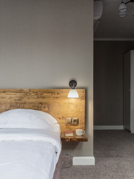 Двухместный нoмеp КОМФОРТ площадью от 17 м2 с большими светлыми окнами с видом на окрестности и собственной ванной комнатой. В номере есть все необходимое для комфортного пребывания: большая двуспальная кровать с натуральным постельным бельем из лиоцеллы, рабочая зона, большое зеркало, шторы блэкаут, шкаф для одежды. В ванной комнате душ, туалет, раковина, зеркало, фен, а также полотенца, тапочки и средства личной гигиены (гель, шампунь, зубные наборы (по запросу), жидкое мыло, туалетная бумага). Все номера также оснащены кондиционером, телевизором и бесплатным скоростным Wi-Fi.