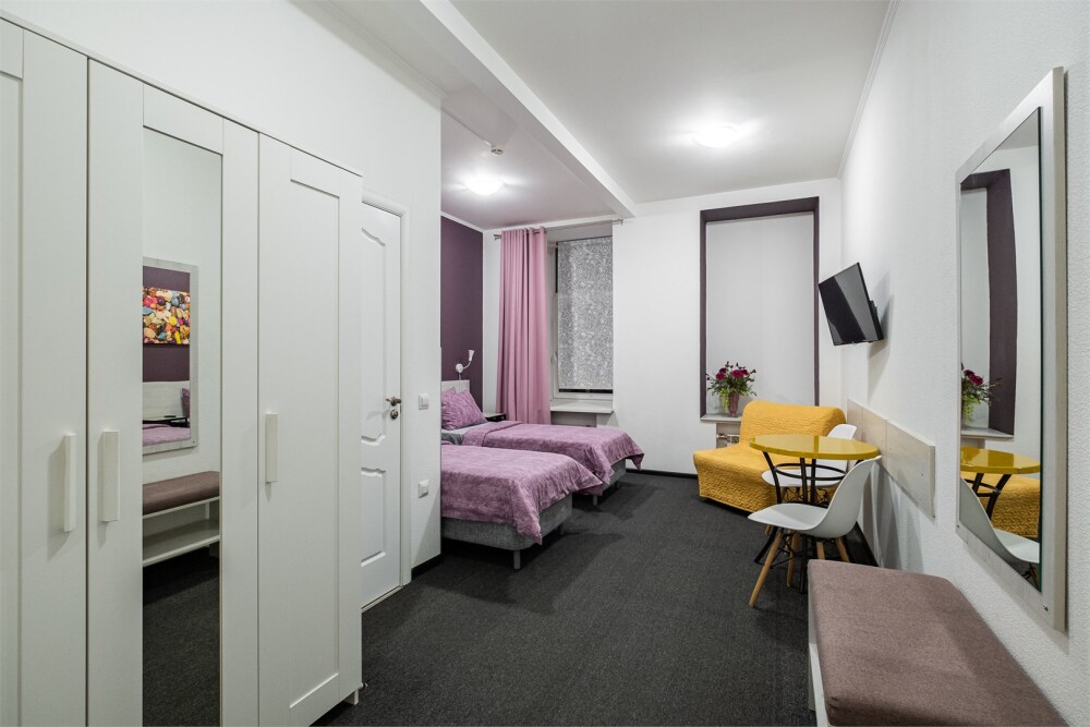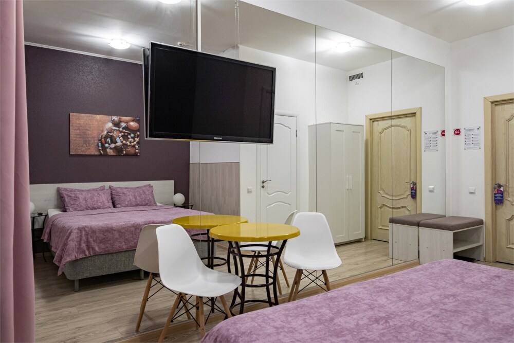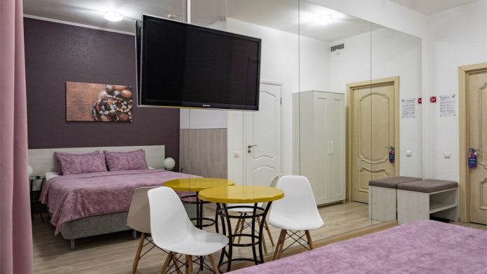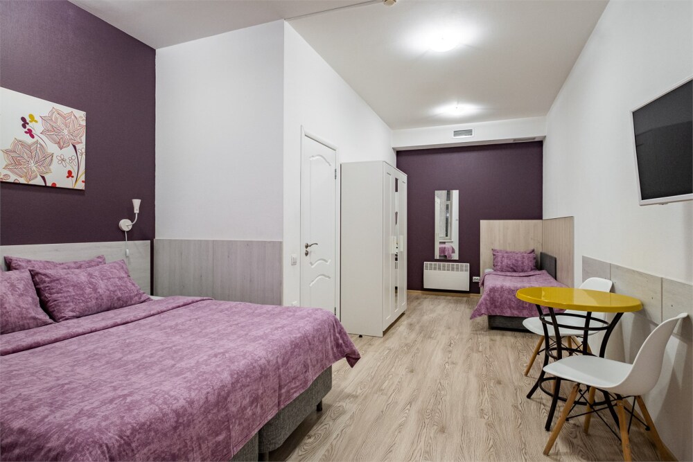 Просторный номер вмещает 3-4 человека. Есть номера с кондиционером.