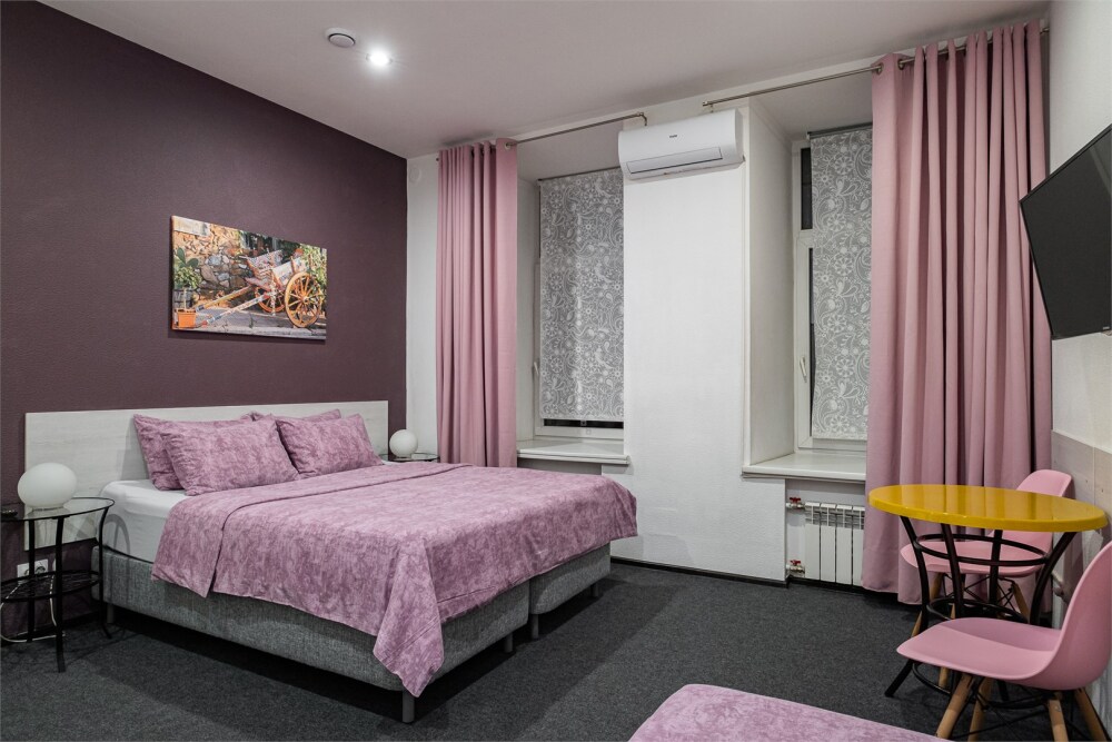 Стандартный уютный номер небольшой площади с двуспальной кроватью 140 см. Есть номера с кондиционером.