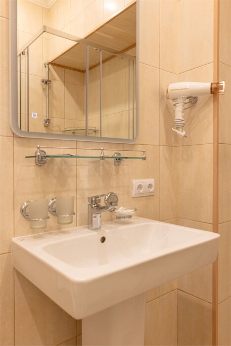Проживание с животными: разрешено размещение с собаками мелких/средних пород ростом не более 40 см в холке и весом не более 20 кг; кошки, собаки бойцовских пород, рептилии, птицы и дикие животные не допускаются; требуется предоставление ветеринарных документов; размещение с собаками-поводырями разрешается вне зависимости от их породы и веса; максимальное количество питомцев на номер - 1; с собой нужно иметь лоток, переноску, миску, подстилку, корм, намордник, средства для уборки, любимую игрушку питомца, гигиенические пакеты.