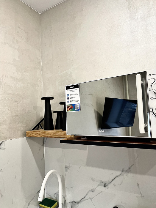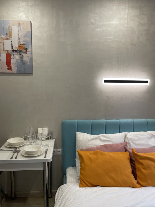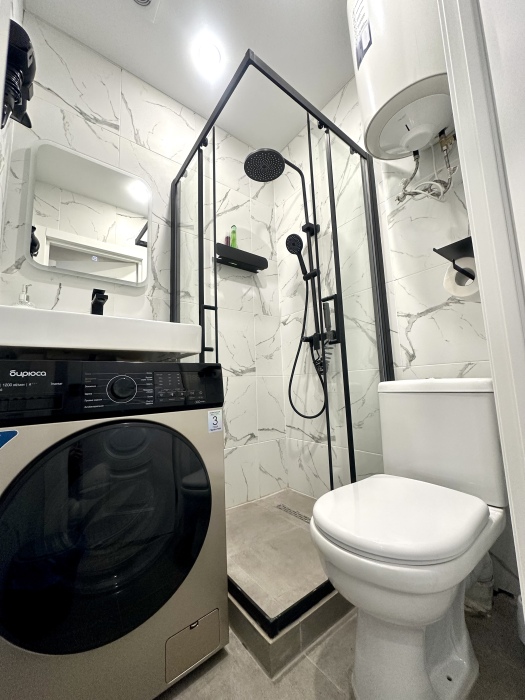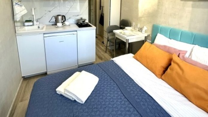 Квартира-студия оснащена всем необходимым для комфортного проживания:чистое постельное белье из прачечной, кроватью, шкафом, телевизором, обеденным столом, кухней со всей необходимой техникой и посудой, а также стиральной машиной.