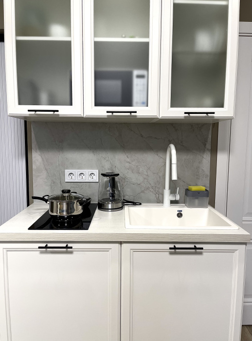 В квартире есть все необходимое комфортного для проживания:чистое постельное белье из прачечной, кровать, телевизор, кухня, холодильник, электрический чайник, микроволновая печь, фен, духовка, плита, стиральная машина.