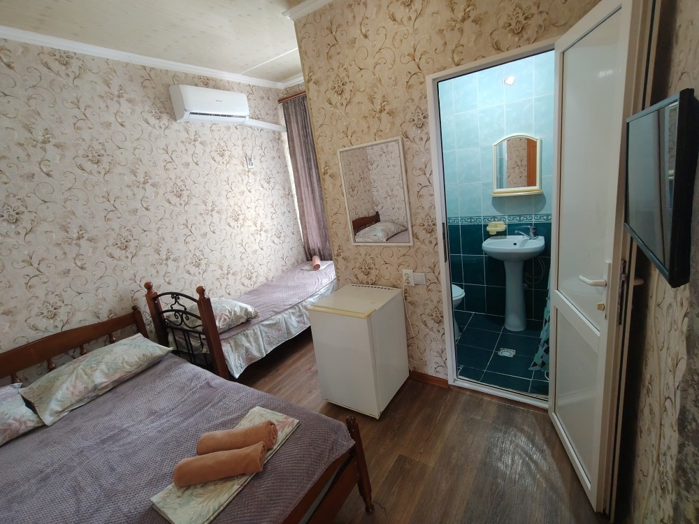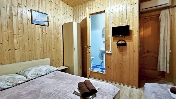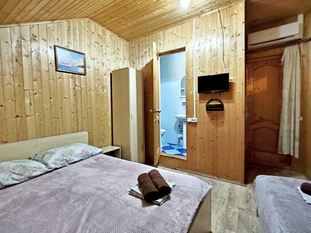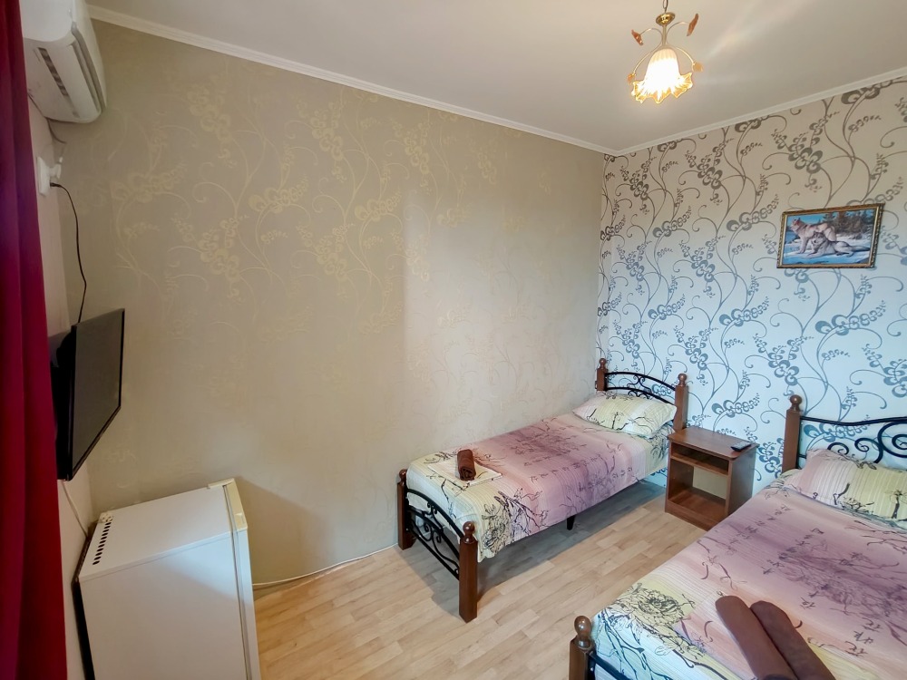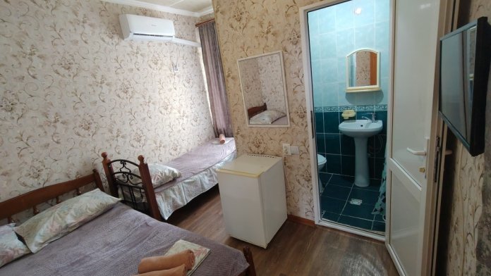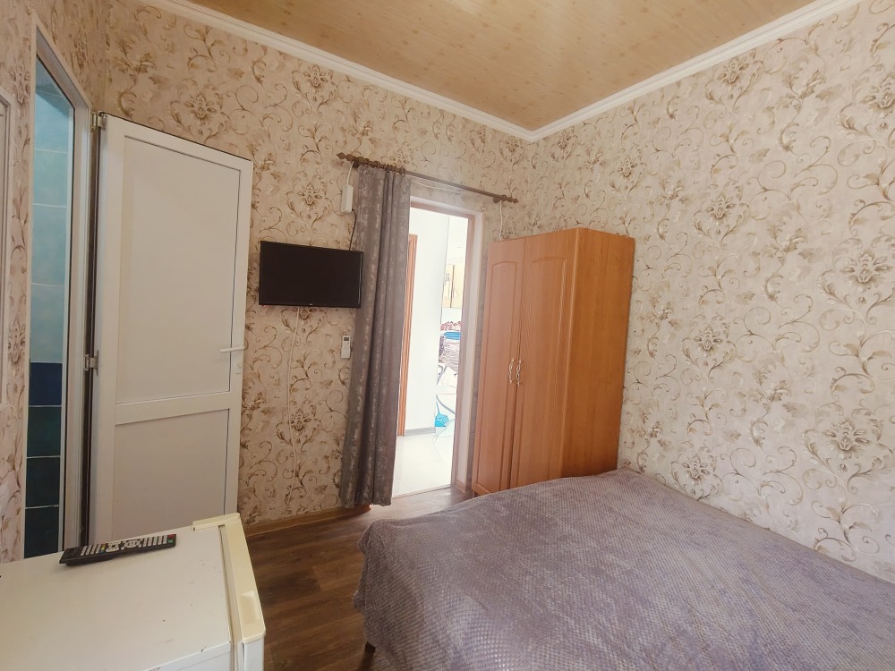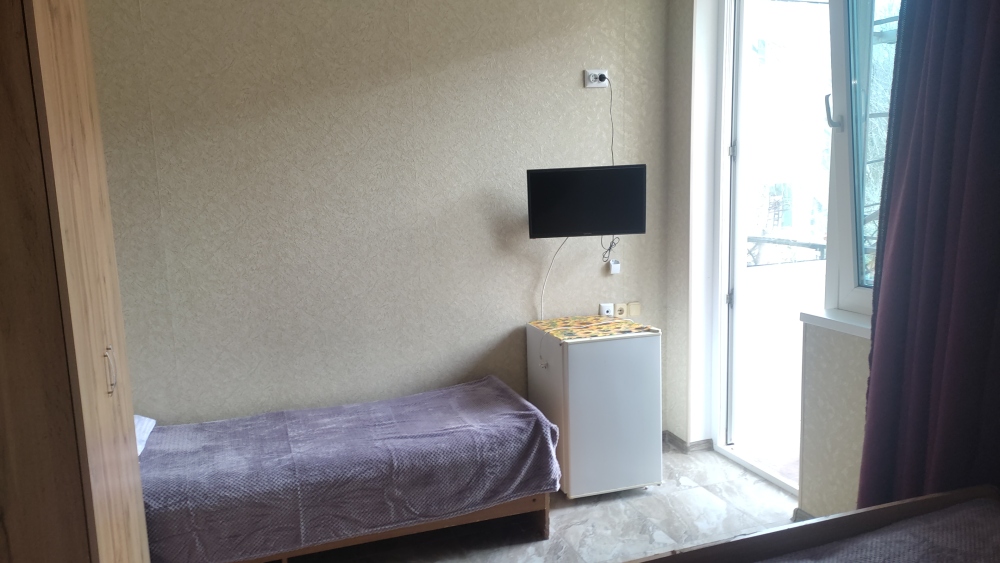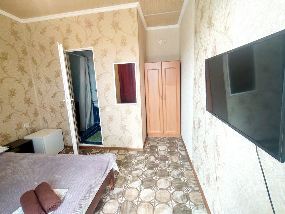 В номере шкаф для одежды, телевизор, холодильник, сплит система. Душ и туалет на этаже.