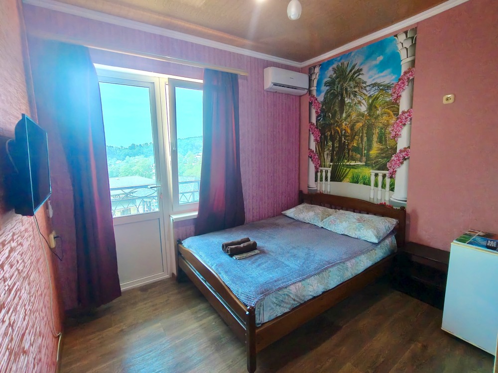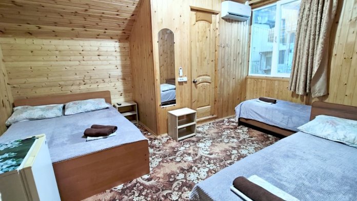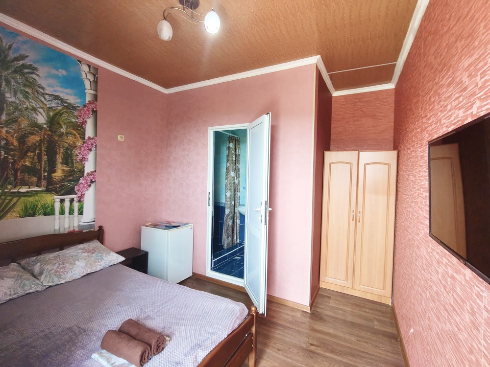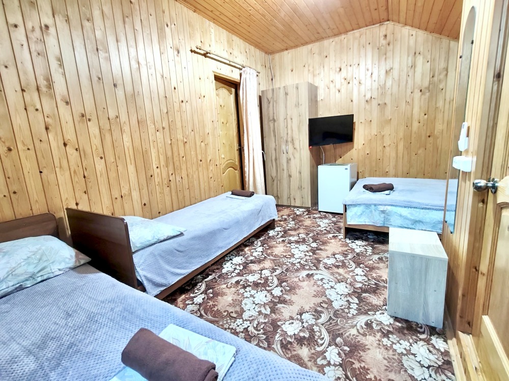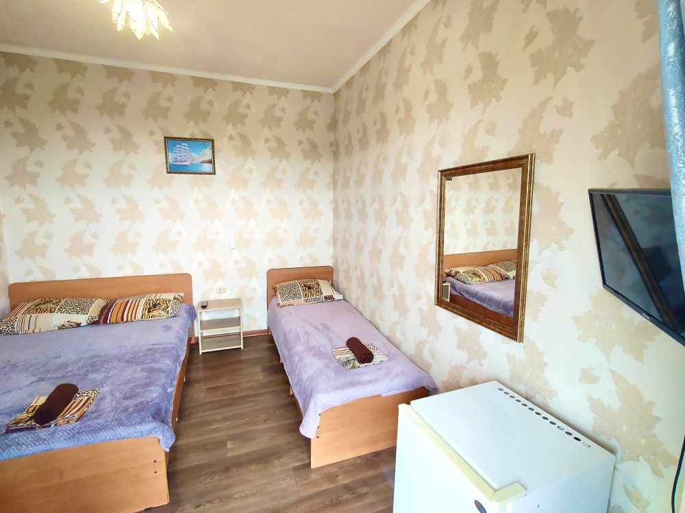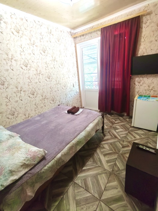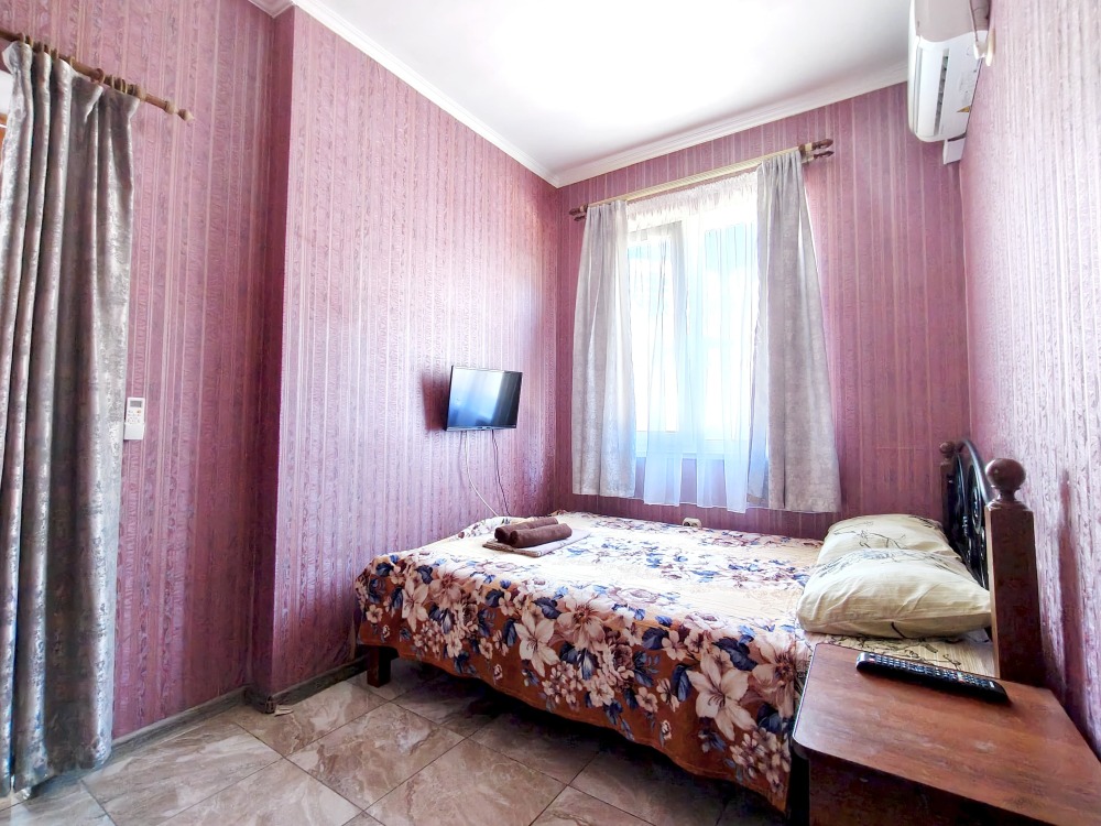 В номере шкаф для одежды, телевизор, холодильник, сплит система. Душ и туалет на этаже.